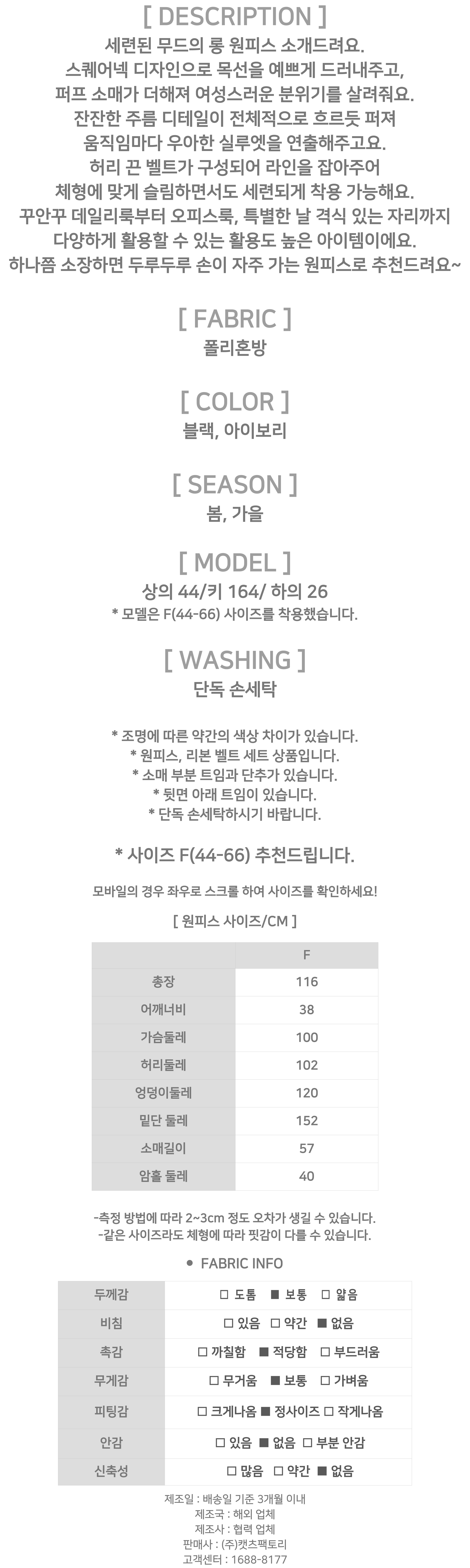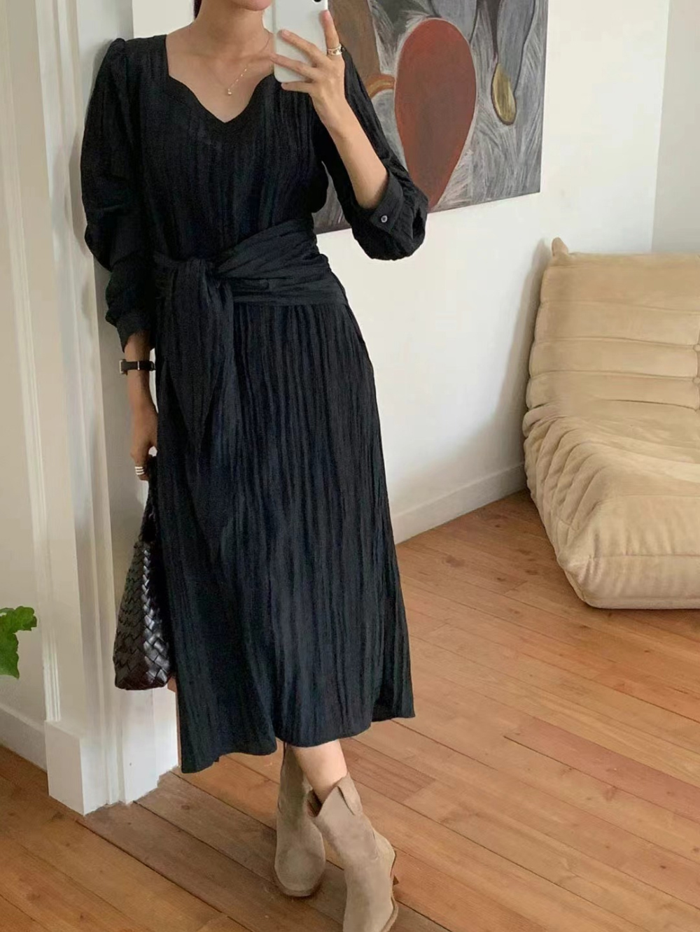 ◈[당일발송] 퍼프 슬리브 주름 롱 원피스