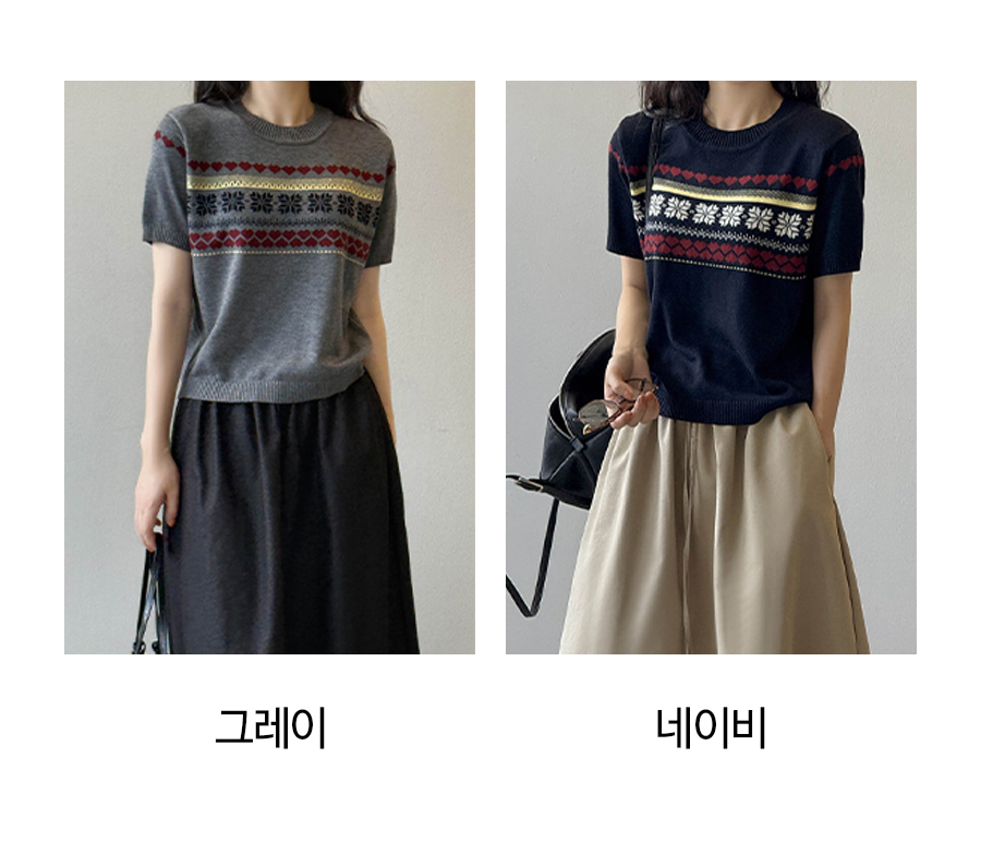 179970 ★화요특가 자정마감 50%★포근 노르딕 패턴 반팔 니트 31790