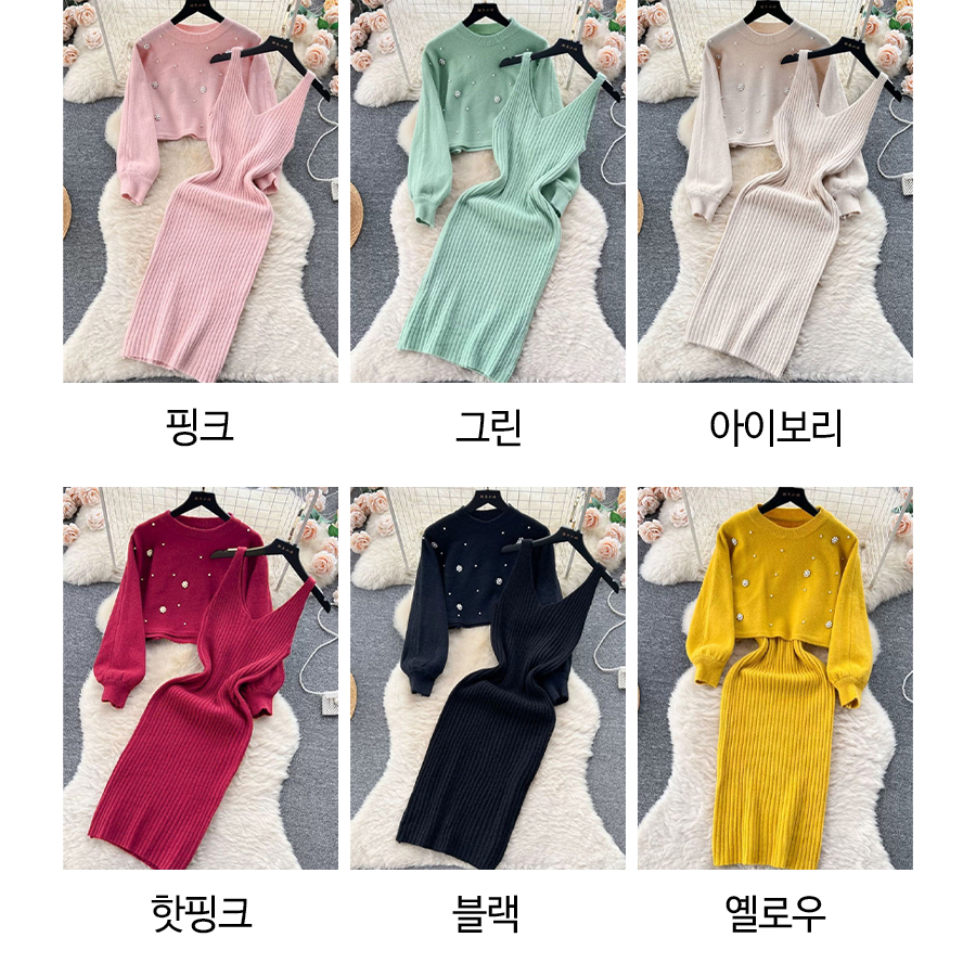 ◈[당일발송] 우아한 진주 니트&골지 원피스 2SET