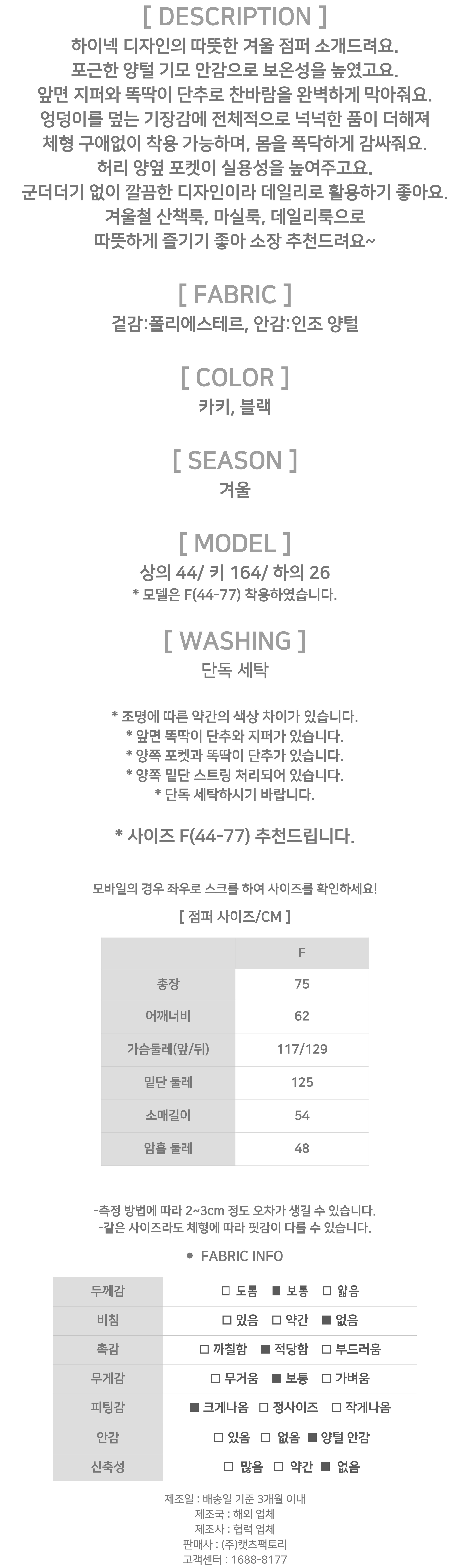 180950 윈터 하이넥 양털안감 데일리 점퍼 79980