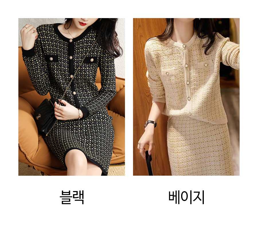 175544 ◈[당일발송] 고급스러운 진주 트위드 가디건&스커트 2SET 39980