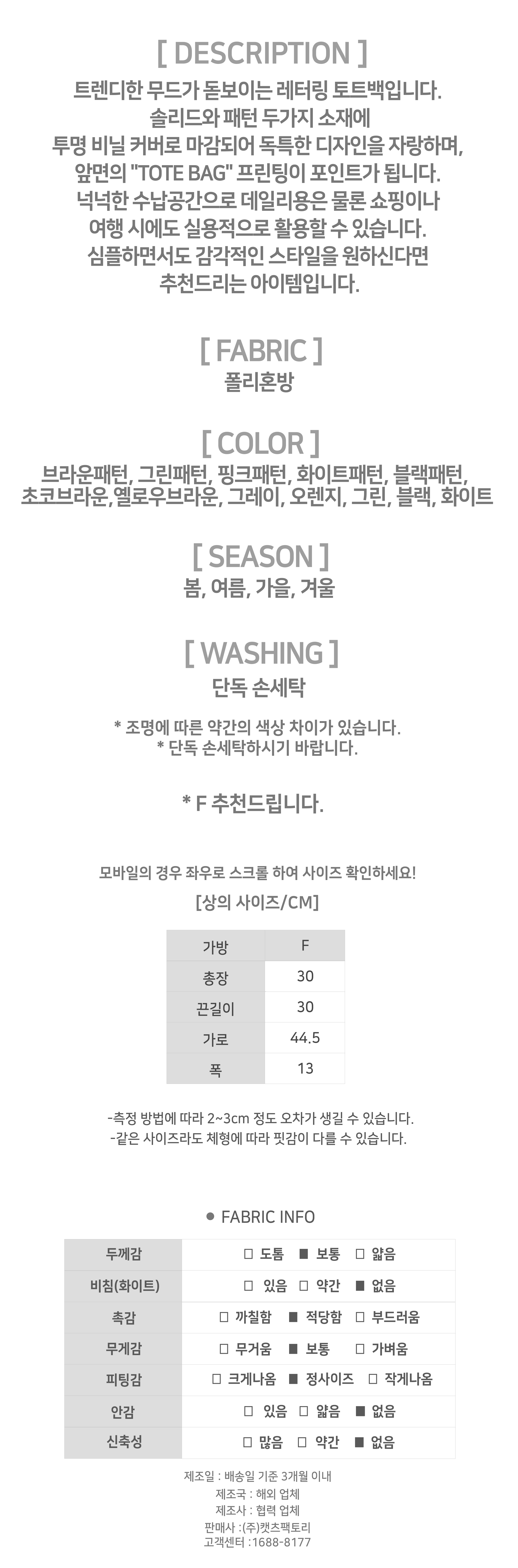 - 상품의 색상은 사용하시는 모니터 사양에 따라 실제 색상과 다소 차이가 있을 수 있으며, 이는 불량의 사유가 되지 않습니다.