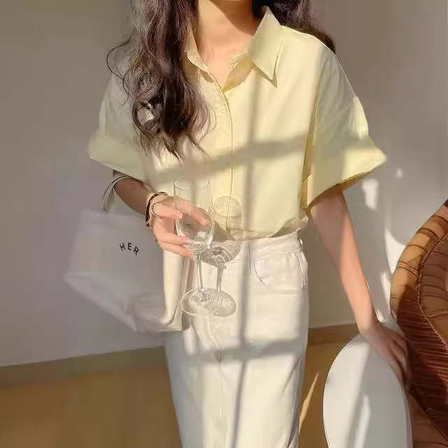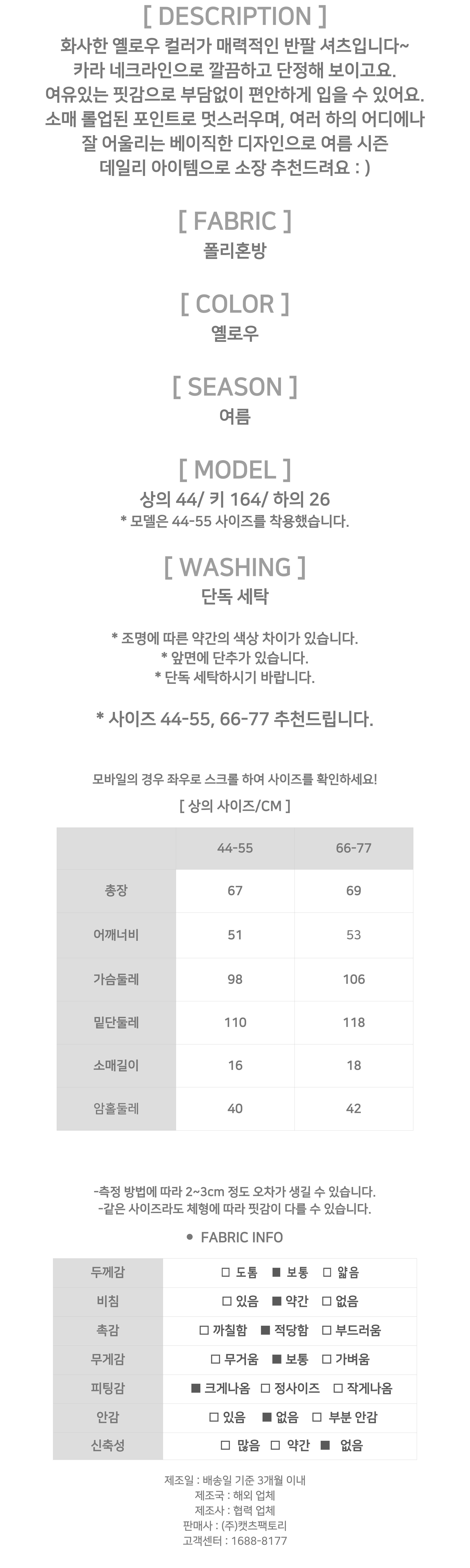 174547 [당일발송] 옐로우 베이직 루즈 반팔 셔츠 19990