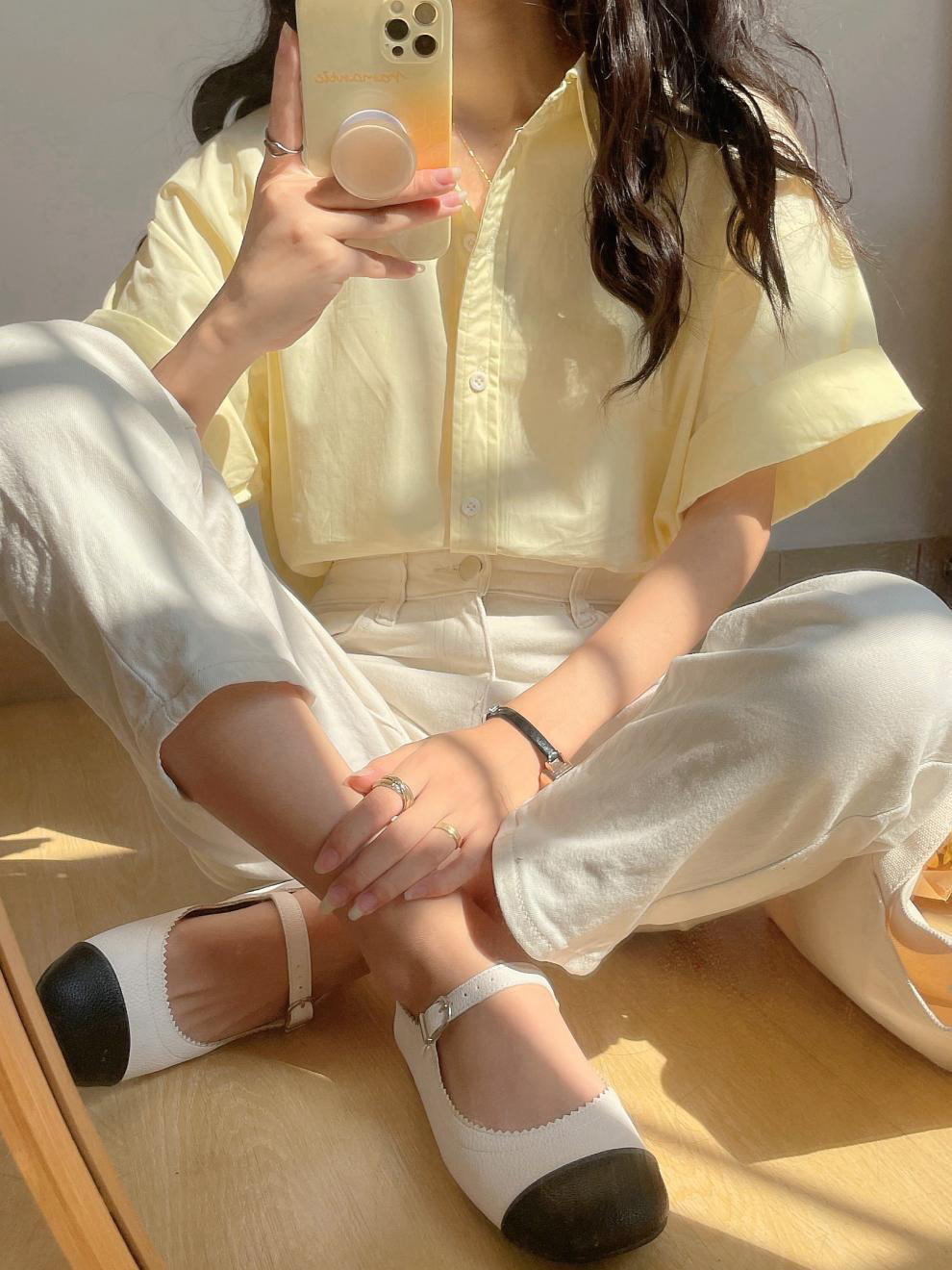 [당일발송] 옐로우 베이직 루즈 반팔 셔츠