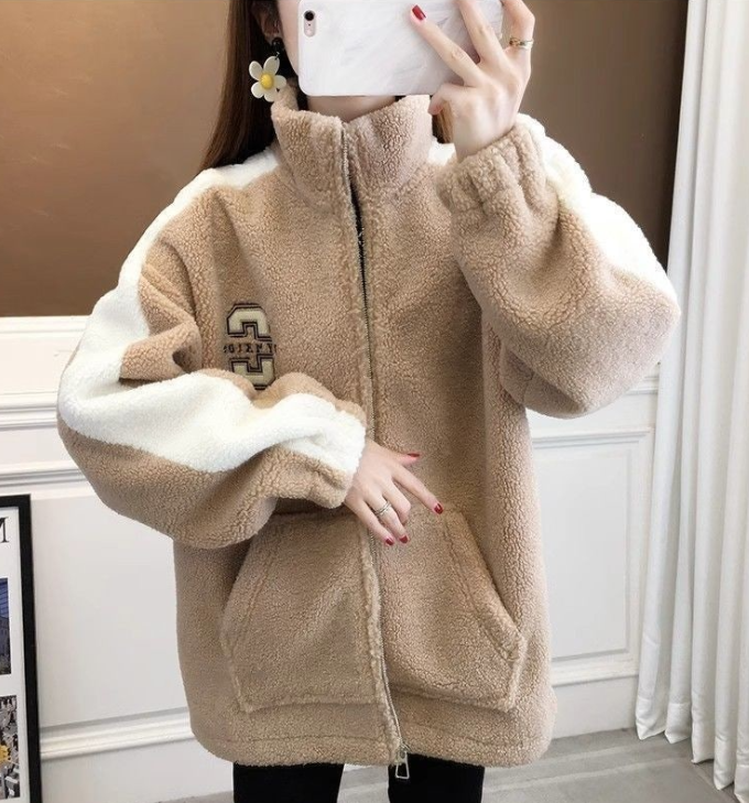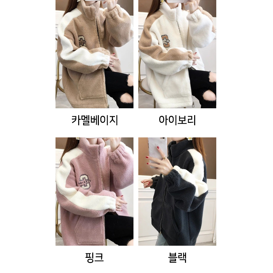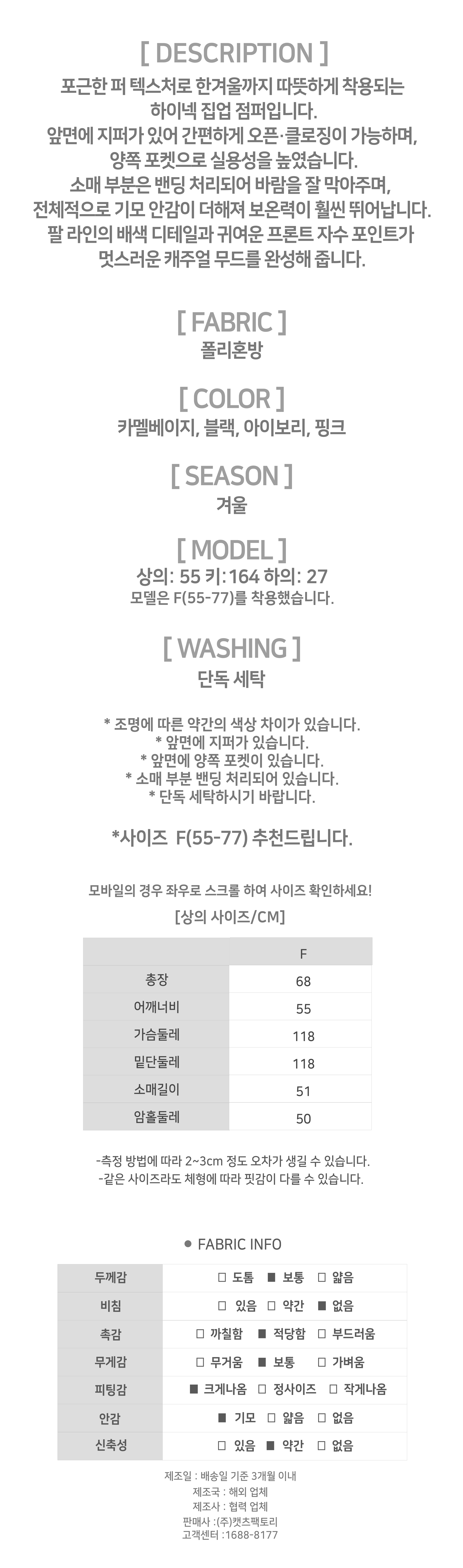 181235 배색 포인트 퍼 하이넥 집업 점퍼 29380