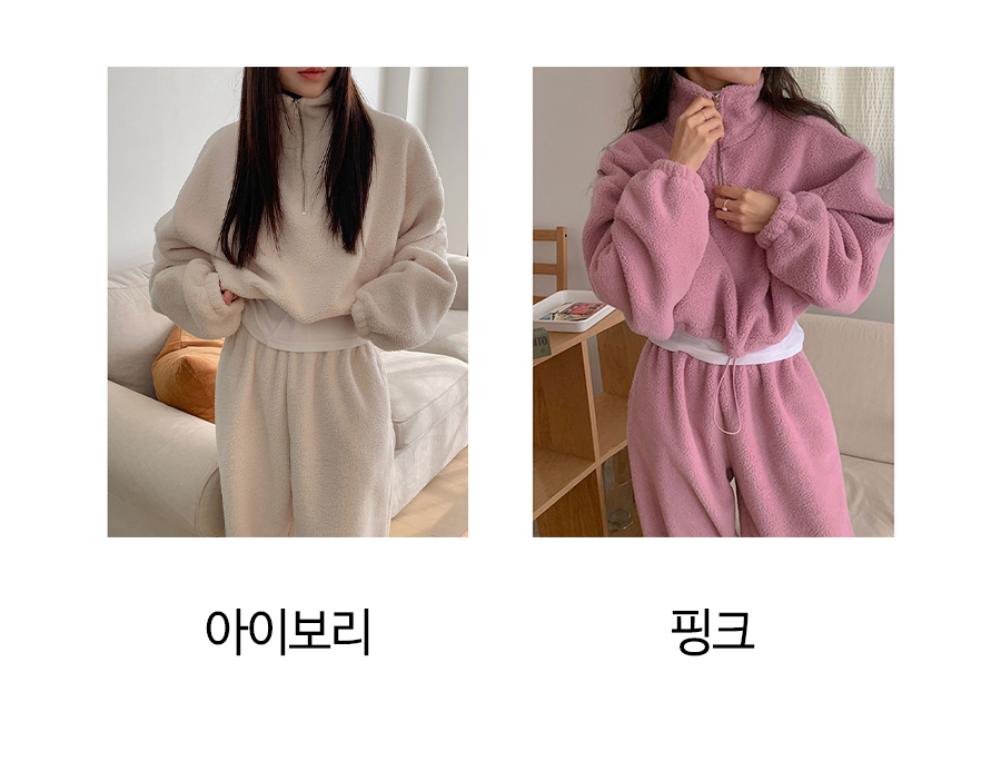 ◈[당일발송] 루즈핏 반집업 뽀글이 맨투맨&밴딩 팬츠 2SET