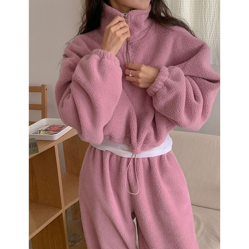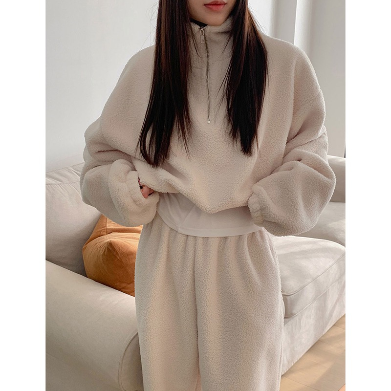 176387 ◈[당일발송] 루즈핏 반집업 뽀글이 맨투맨&밴딩 팬츠 2SET 28090