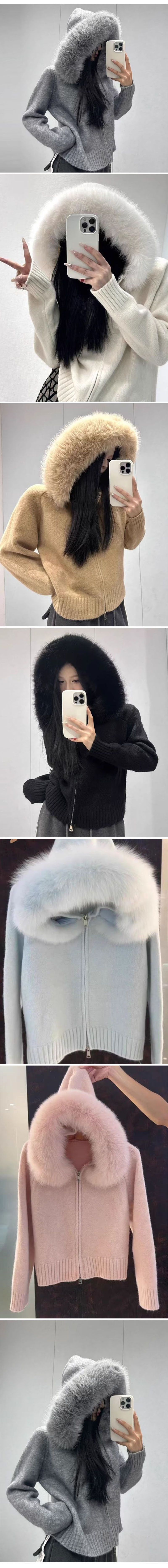 181207 퍼 트리밍 후드 니트 가디건 29380