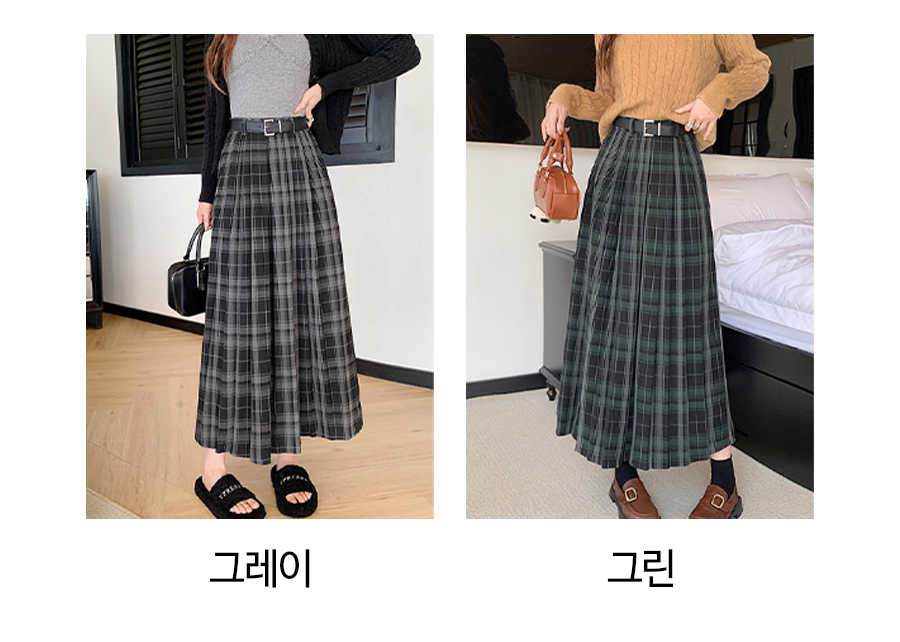 181417 ◈[당일발송] 타탄 체크 플리츠 벨트 스커트 39980