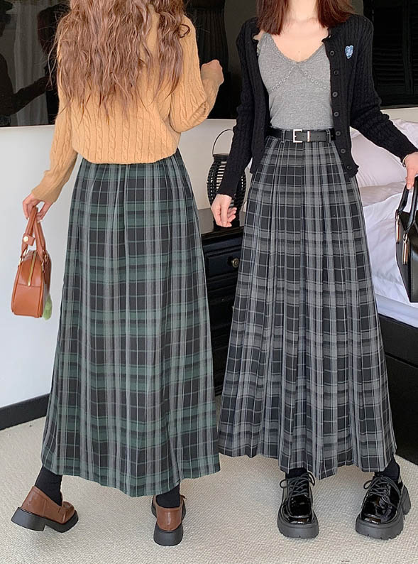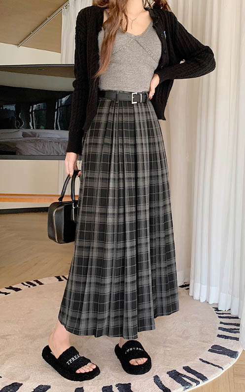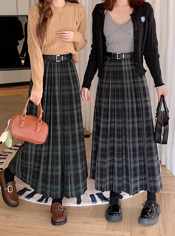◈[당일발송] 타탄 체크 플리츠 벨트 스커트