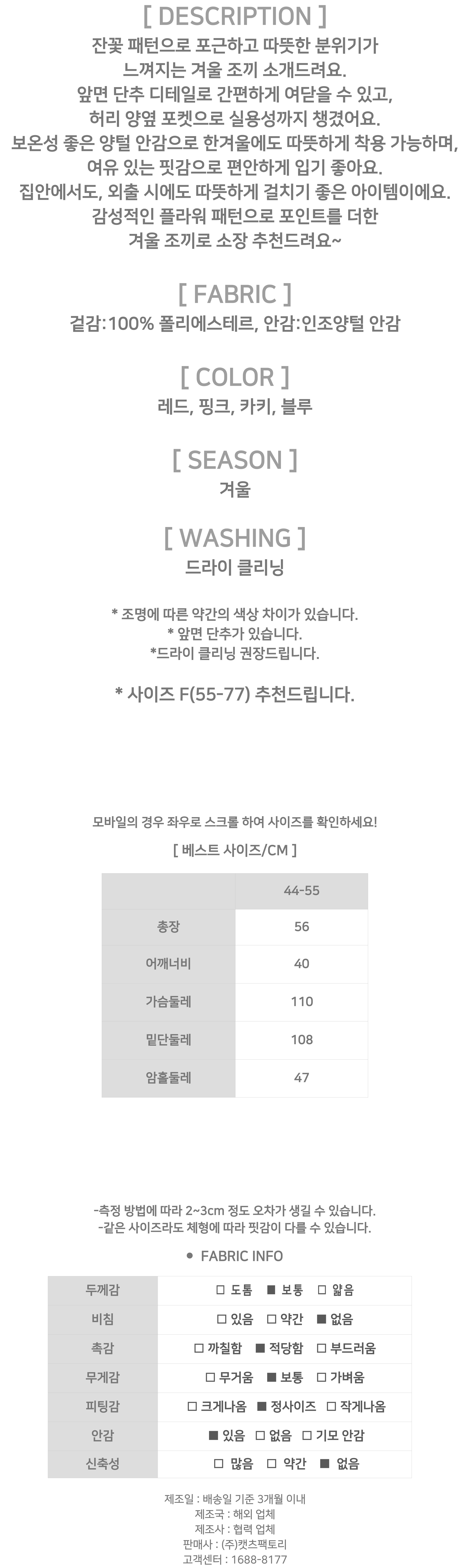 180481 겨울 잔꽃 패턴 양털 조끼 15980