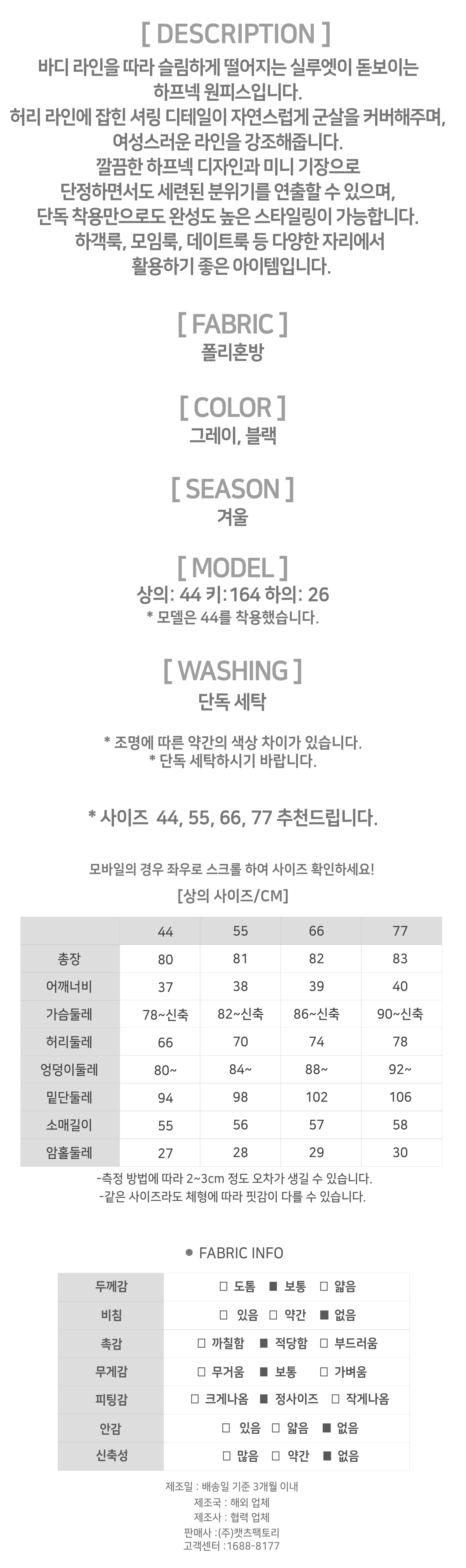 181760 ◈[당일발송] 하프넥 셔링 슬림 원피스 16990