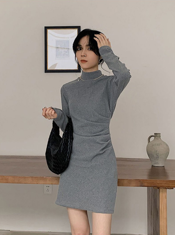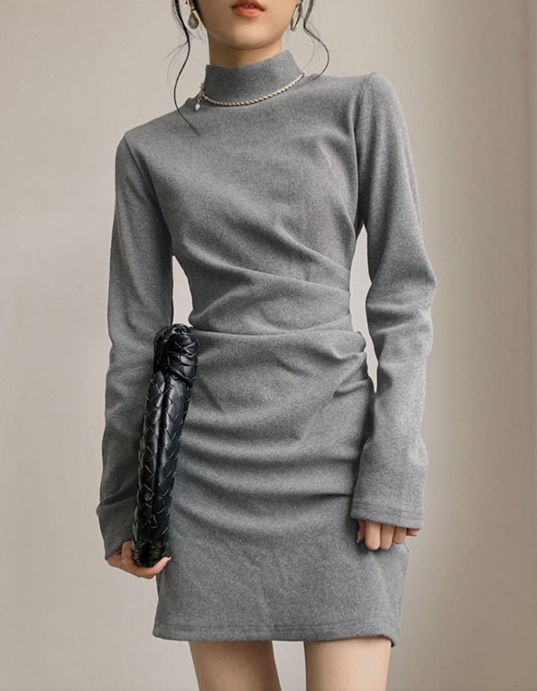 ◈[당일발송] 하프넥 셔링 슬림 원피스