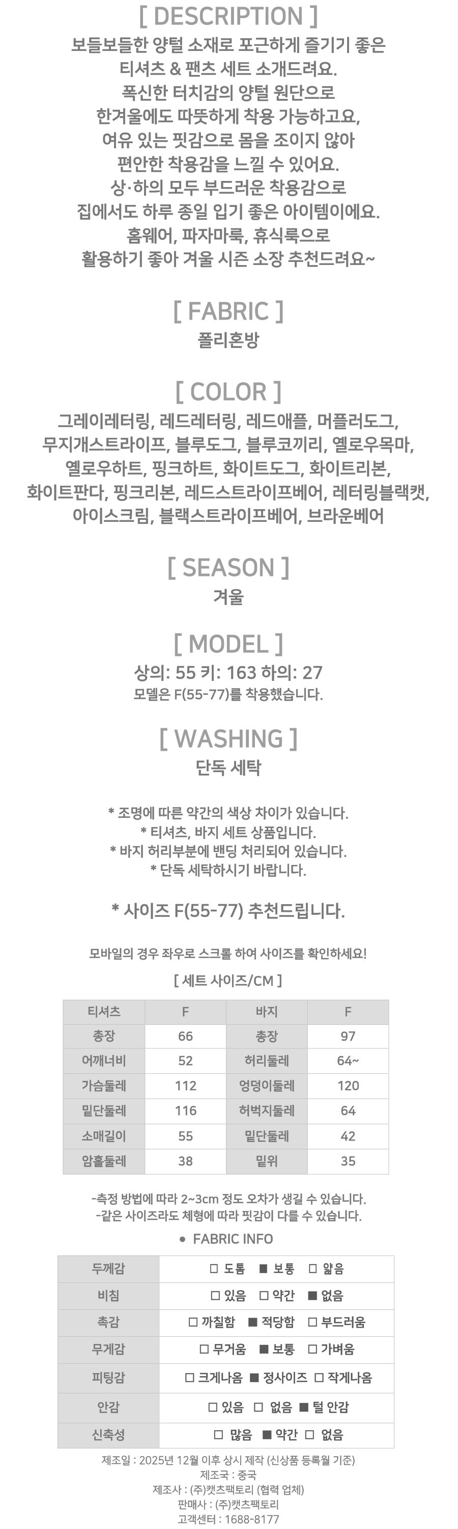 ★화요특가 자정마감 50%★◈[당일발송] 19종 양털 홈웨어 상하의 세트