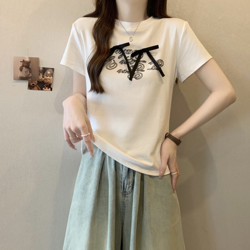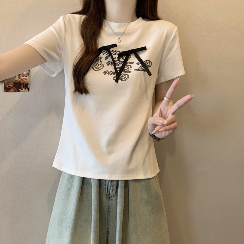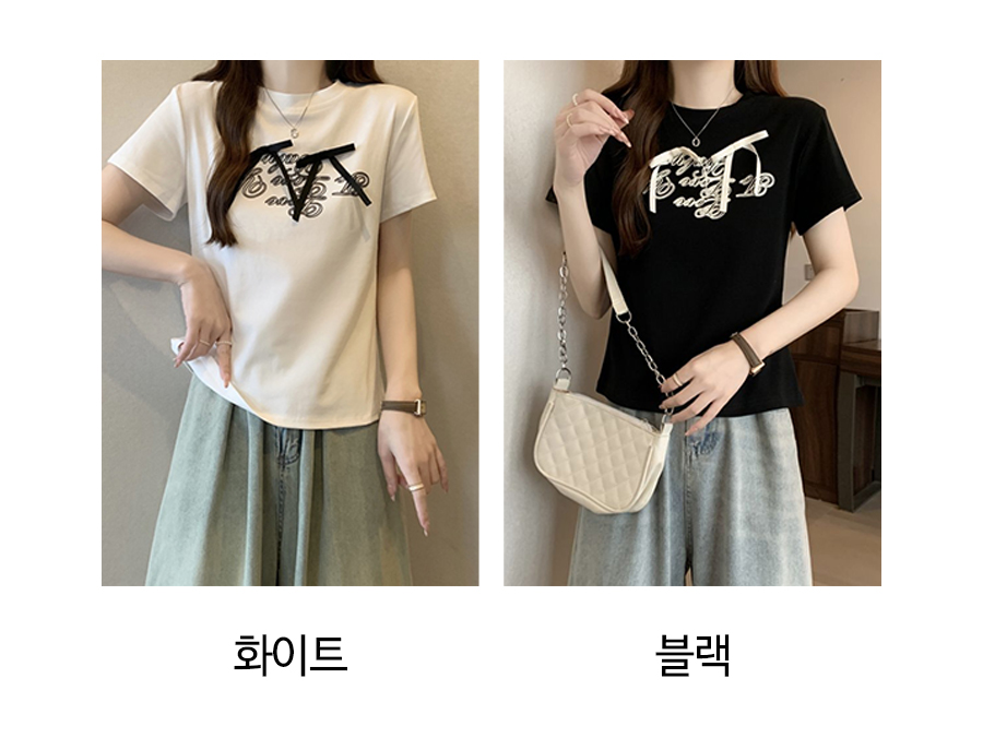 177073 리본 레터링 반소매 티셔츠 12790
