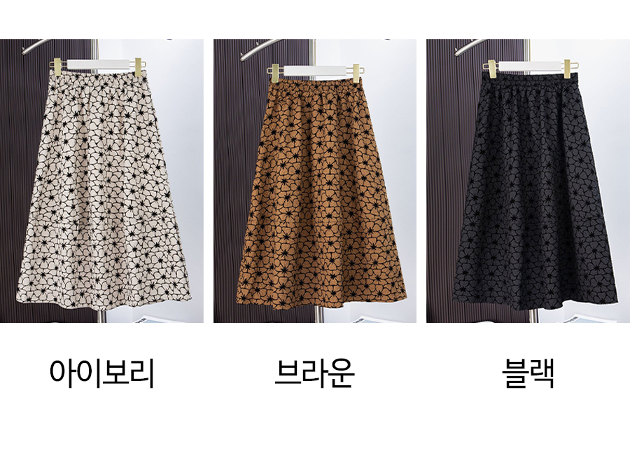 ◈[당일발송] A라인 샤이닝 플라워 밴딩 스커트