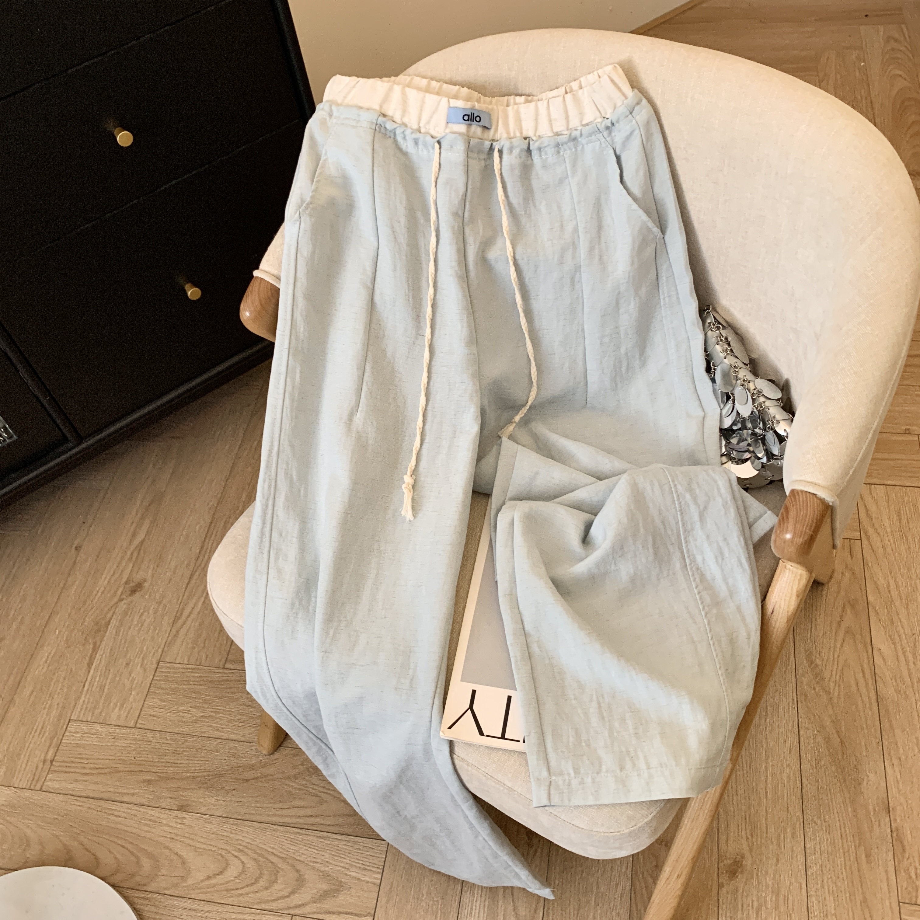 ◈[당일발송] 소프트 컬러 밴딩 와이드 팬츠