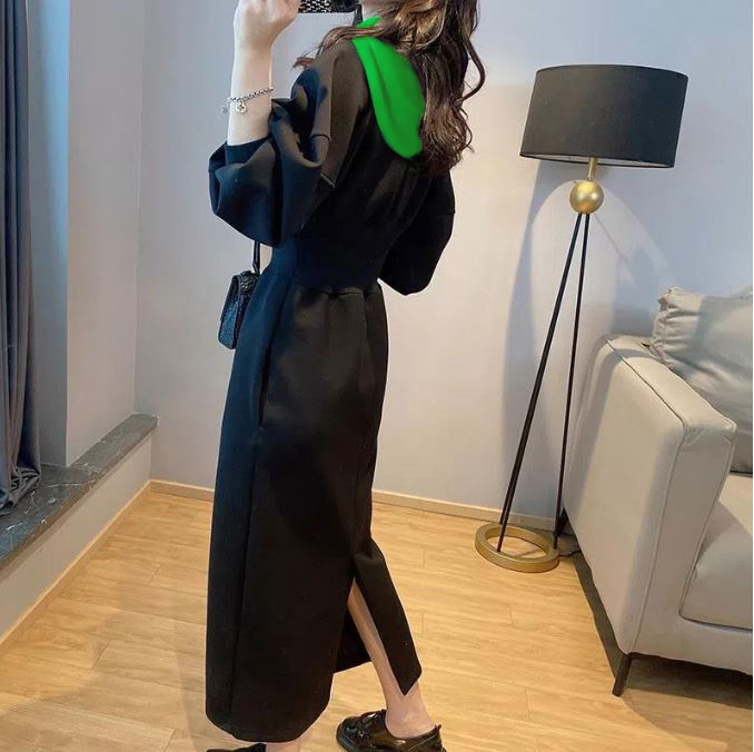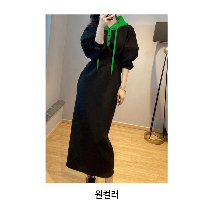 ◈[당일발송] 캐주얼 후드 버튼 롱 원피스
