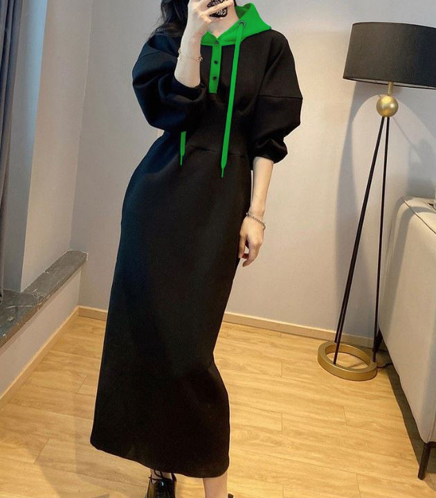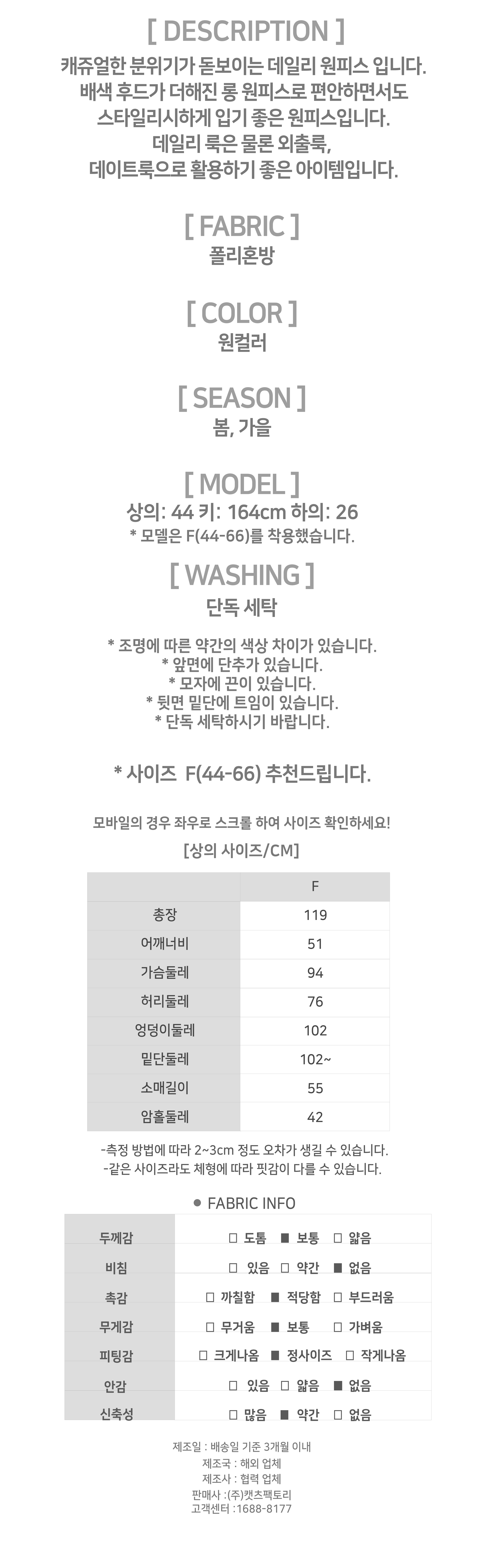 180183 ◈[당일발송] 캐주얼 후드 버튼 롱 원피스 38690