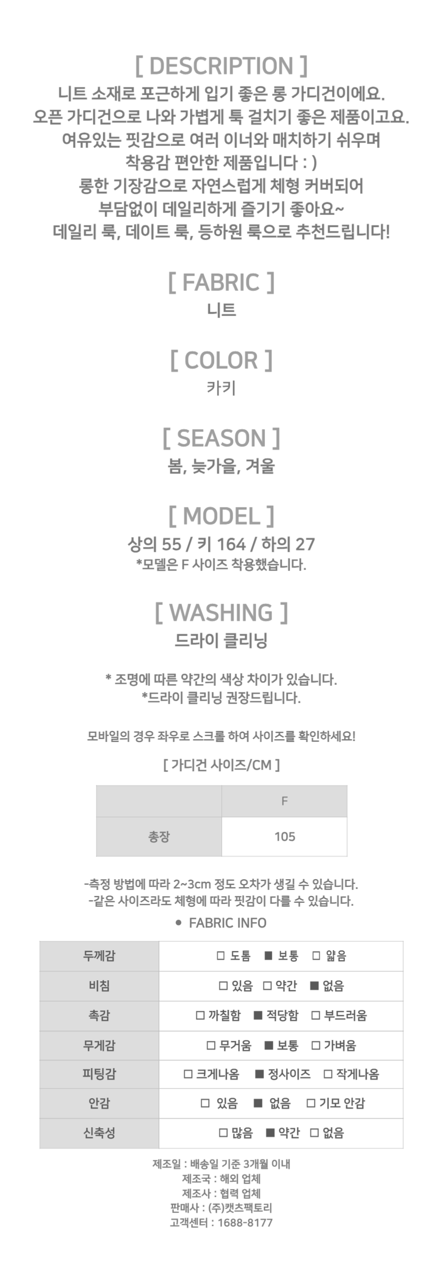 - 상품의 색상은 사용하시는 모니터 사양에 따라 실제 색상과 다소 차이가 있을 수 있으며, 이는 불량의 사유가 되지 않습니다.