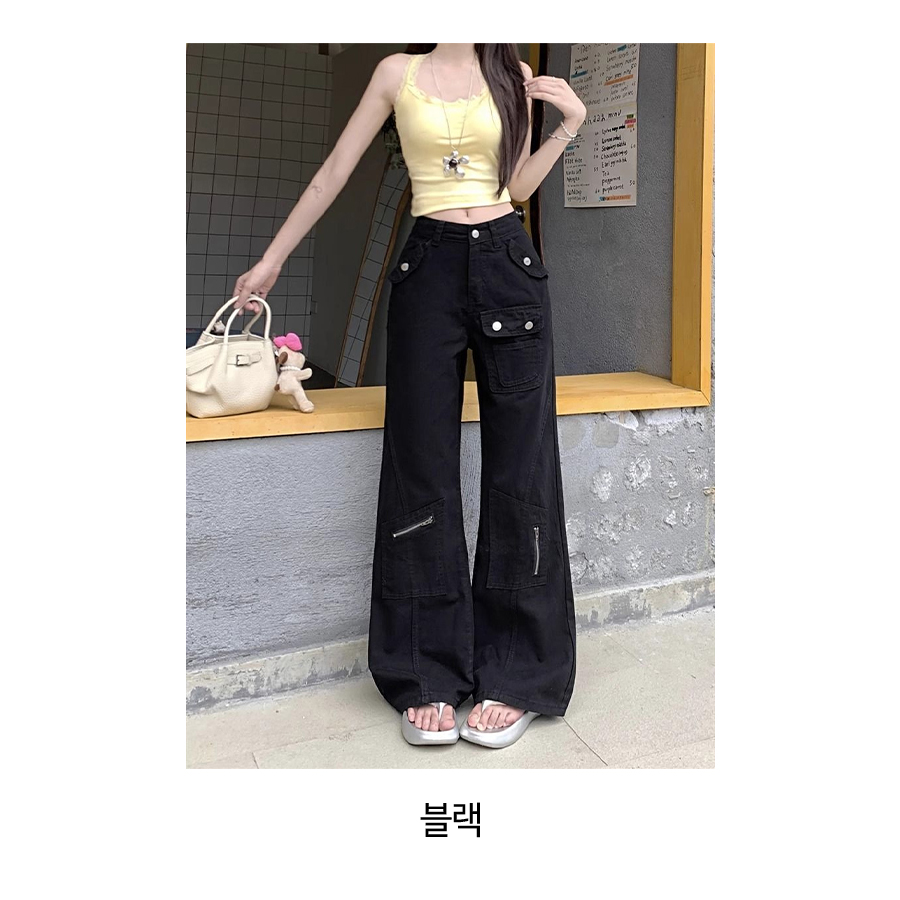 트렌디 부츠컷 블랙 카고 팬츠