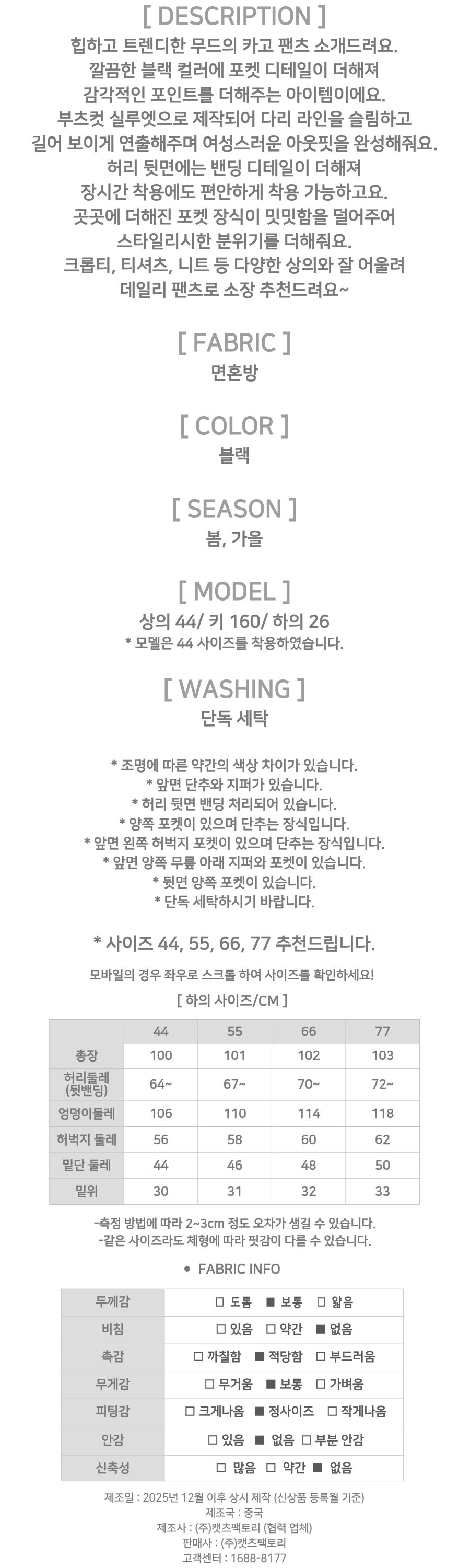 182220 트렌디 부츠컷 블랙 카고 팬츠 25780