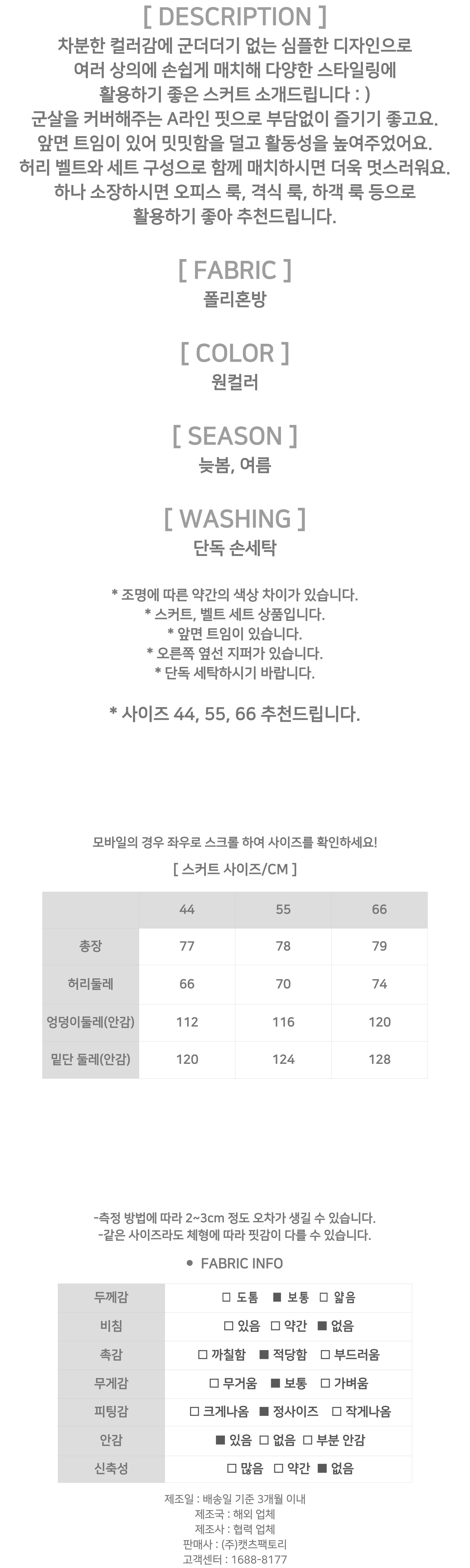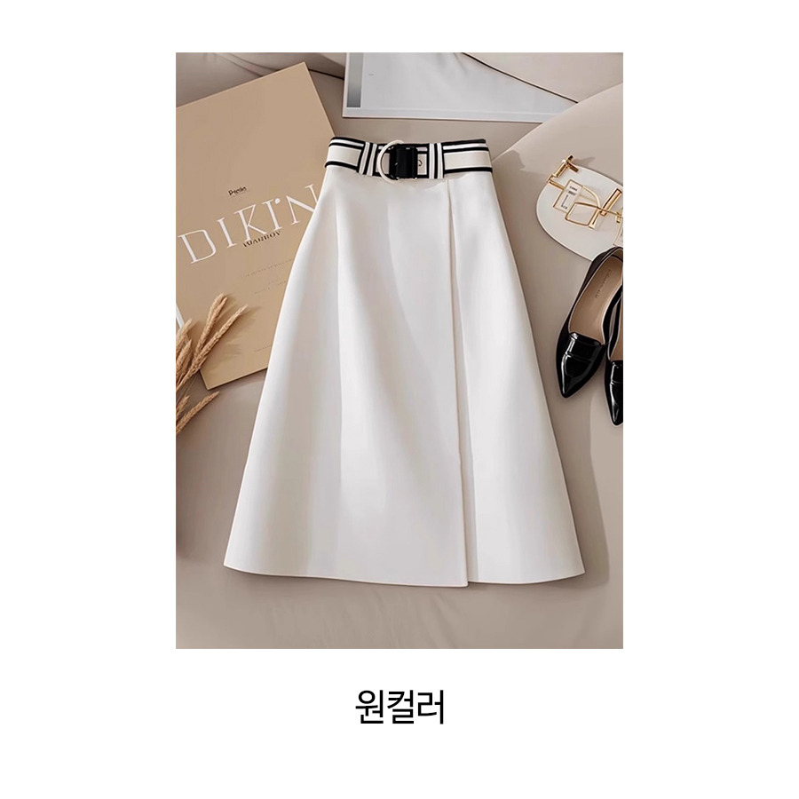 ◈[당일발송] 모던 앞트임 A라인 스커트&벨트 SET