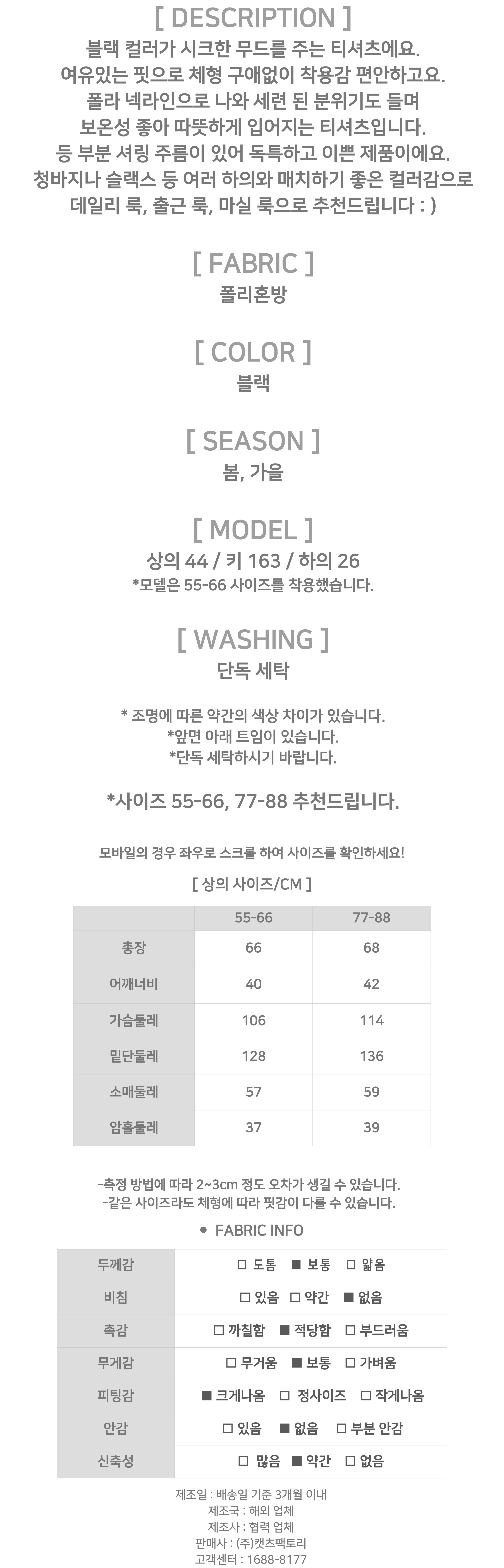 171766 ★화요특가 자정마감 50%★블랙 셔링 폴라넥 루즈핏 티셔츠 39980