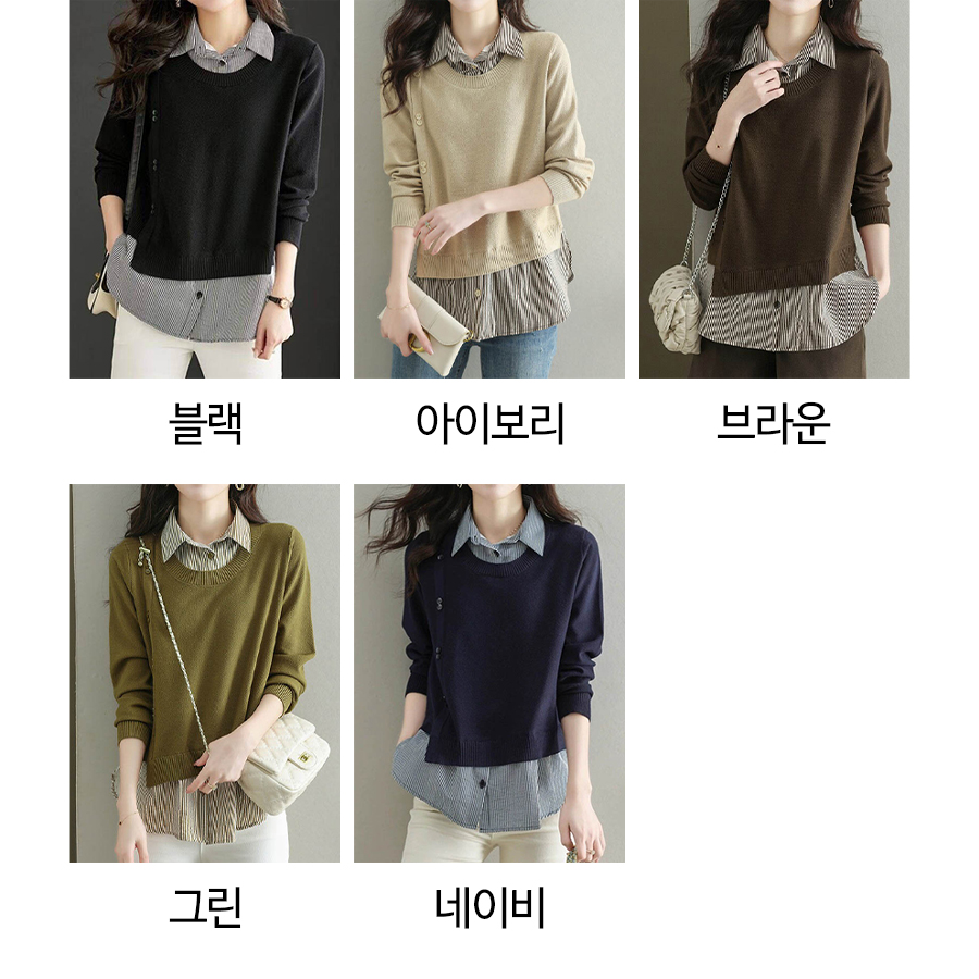 180107 ◈[당일발송] 언발 단추 포인트 레이어드 니트 23480