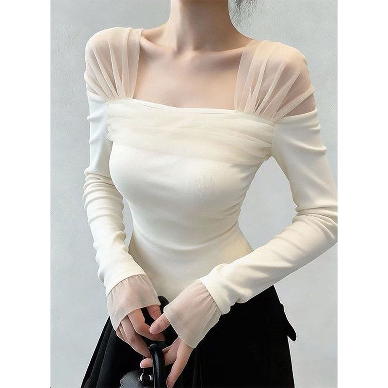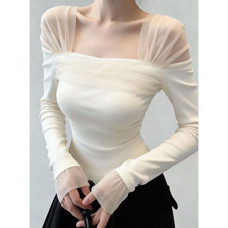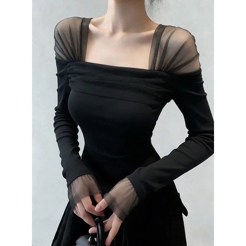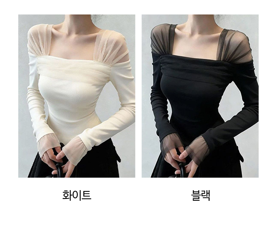 시스루 숄더 스퀘어넥 슬림티
