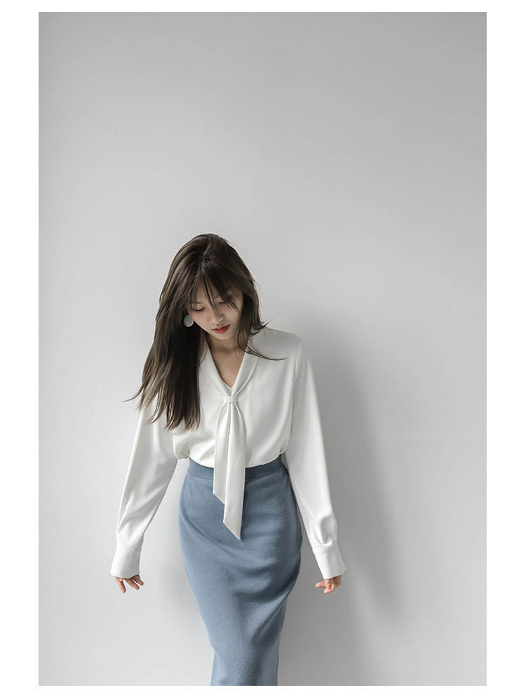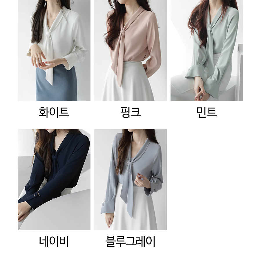 리본 타이 오피스룩 브이넥 블라우스