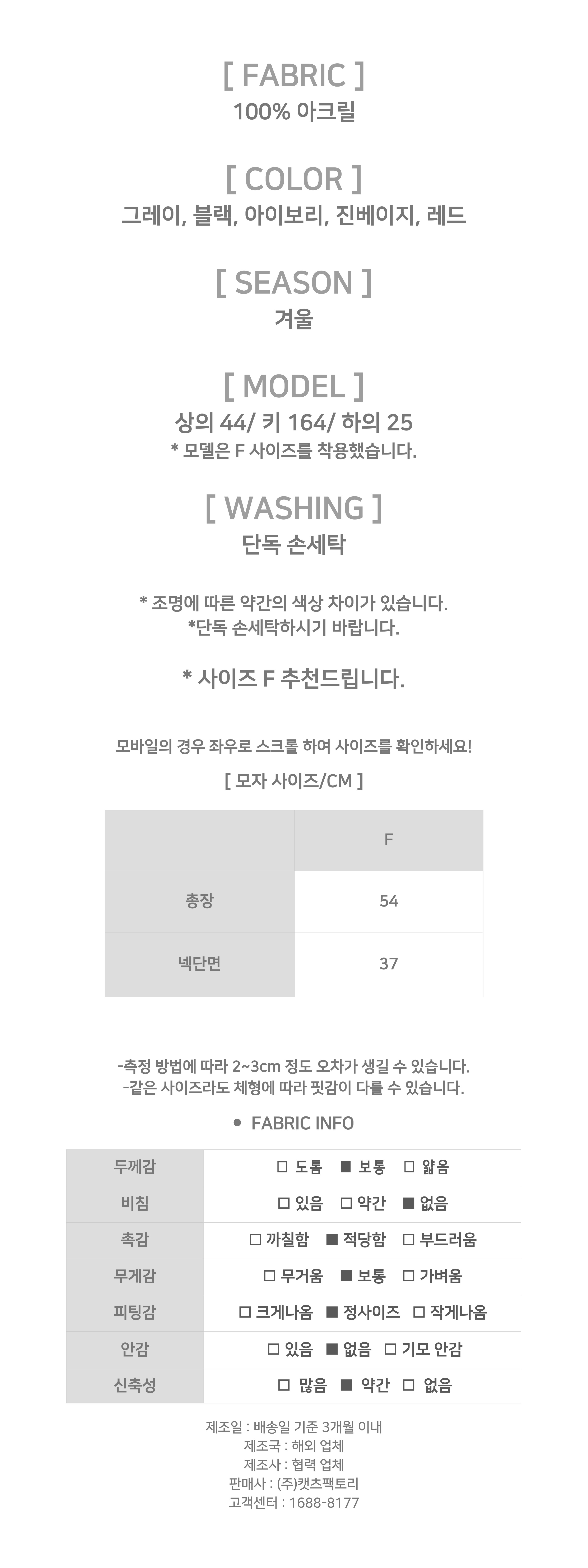 - 상품의 색상은 사용하시는 모니터 사양에 따라 실제 색상과 다소 차이가 있을 수 있으며, 이는 불량의 사유가 되지 않습니다.