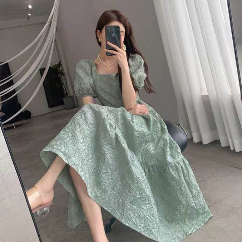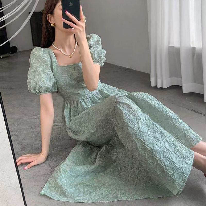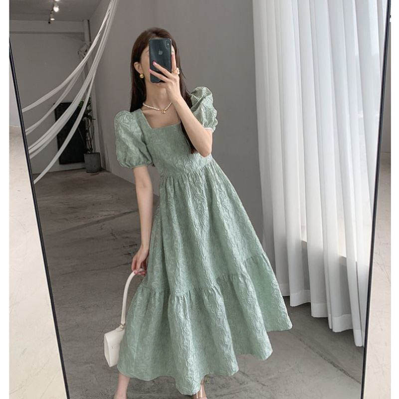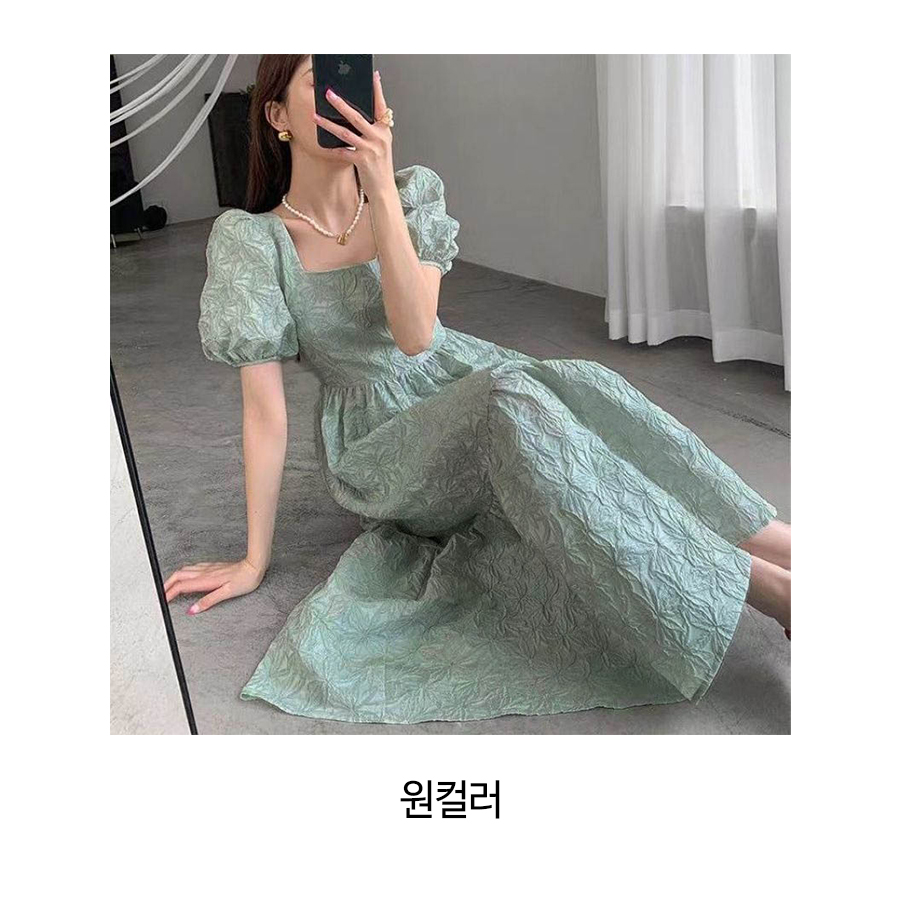 ◈[당일발송] 페미닌 패턴 밴딩 퍼프 원피스
