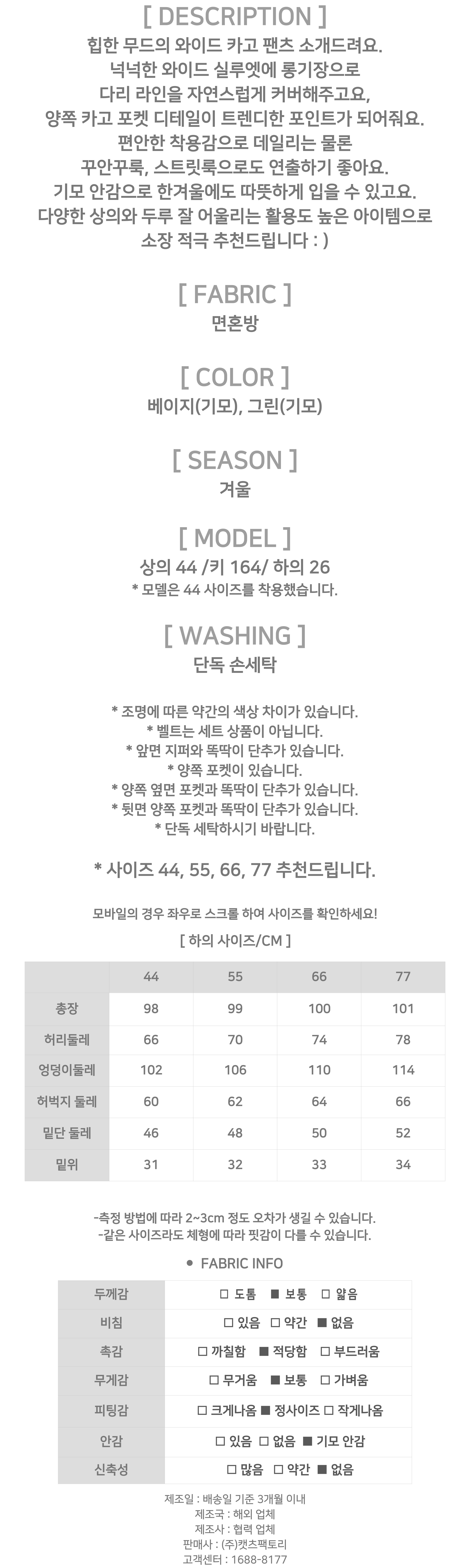 - 제품 사이즈는 측정 방식에 따라 2~3cm의 오차가 있을 수 있으며, 이는 불량의 사유가 되지 않습니다.
