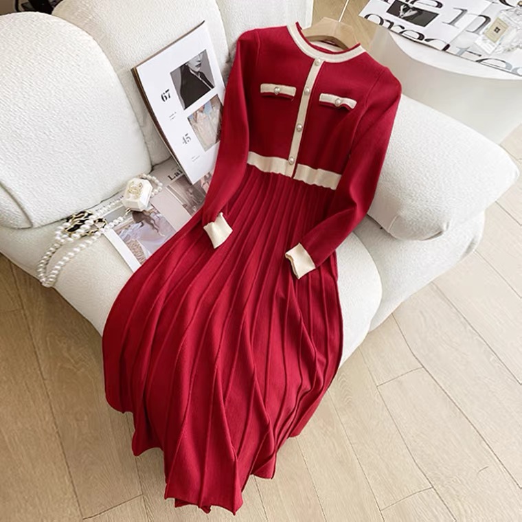 172856 [당일발송]세련된 진주 라운드 니트 원피스 35280