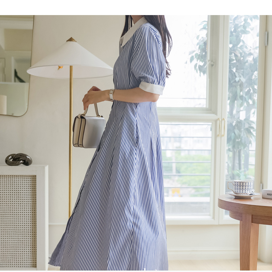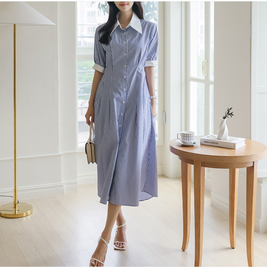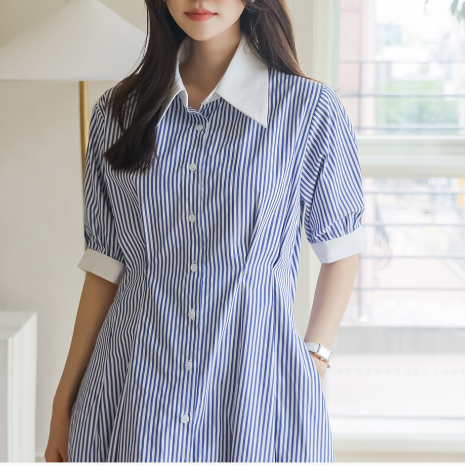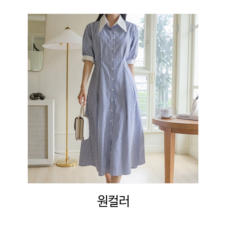 ◈[당일발송] 깔끔 블루 스트라이프 셔츠 원피스