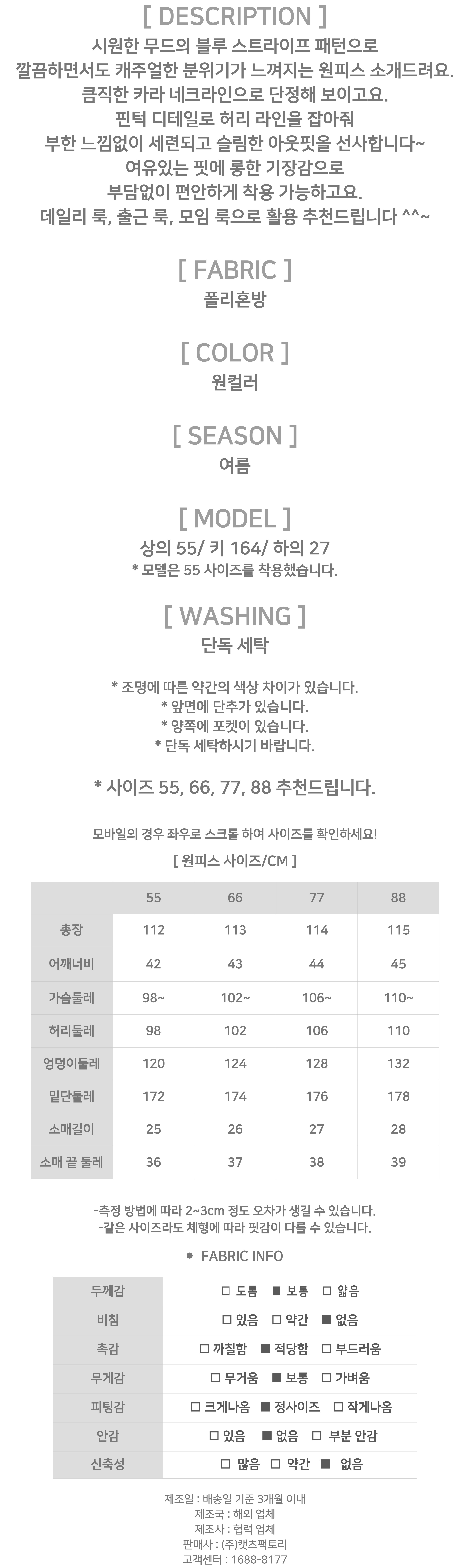 174574 ◈[당일발송] 깔끔 블루 스트라이프 셔츠 원피스 35290