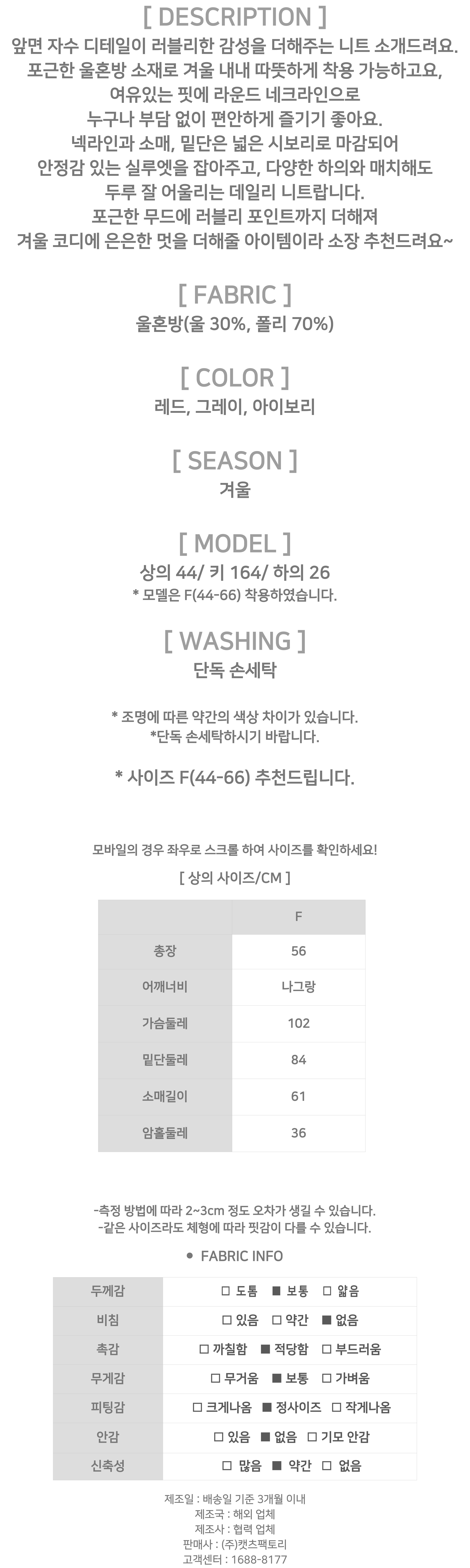 - 반품시 택배 포장을 수령한 대로 하지 않거나 부실하게 하여 택배사 운송도중 물품이 훼손, 오염되어 입고된 경우 (택배사 과실 제외) - 상품의 색상은 사용하시는 모니터 사양에 따라 실제 색상과 다소 차이가 있을 수 있으며, 이는 불량의 사유가 되지 않습니다. - 제품 사이즈는 측정 방식에 따라 2~3cm의 오차가 있을 수 있으며, 이는 불량의 사유가 되지 않습니다.