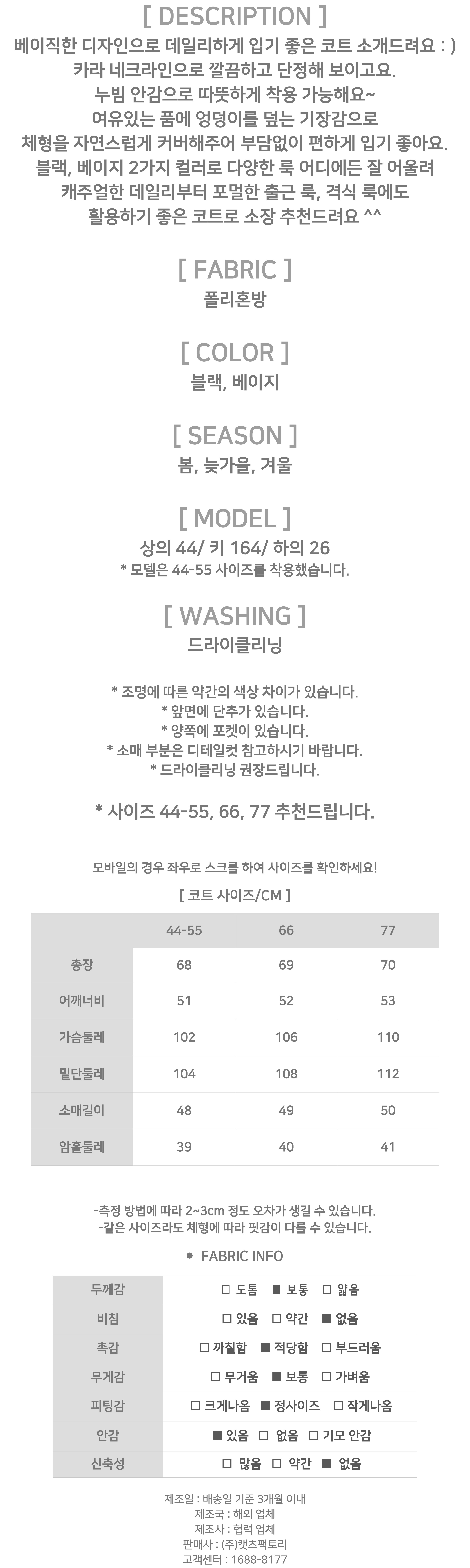 175779 ◈[당일발송]베이직 누빔안감 카라 코트 36990