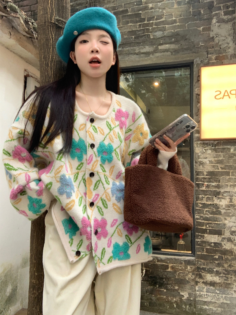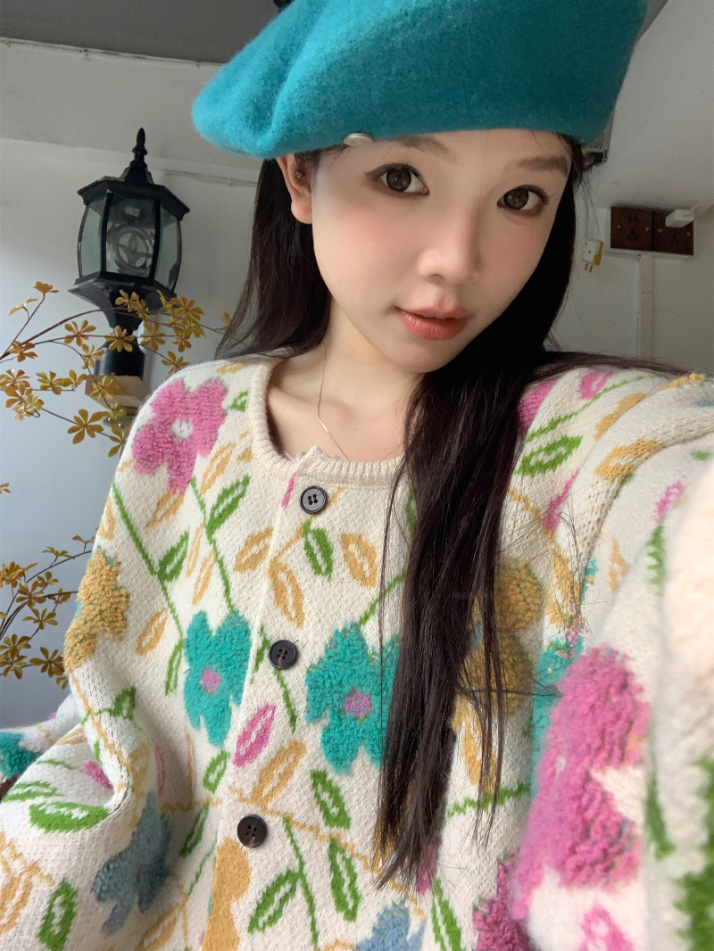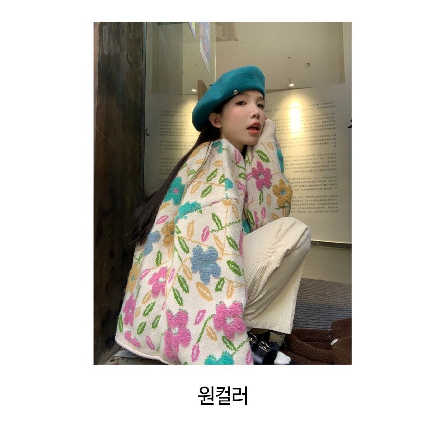 컬러풀 플로럴 루즈핏 가디건