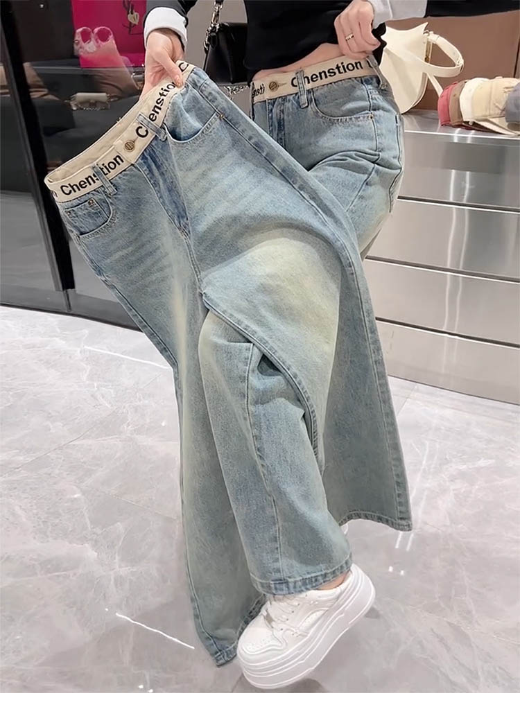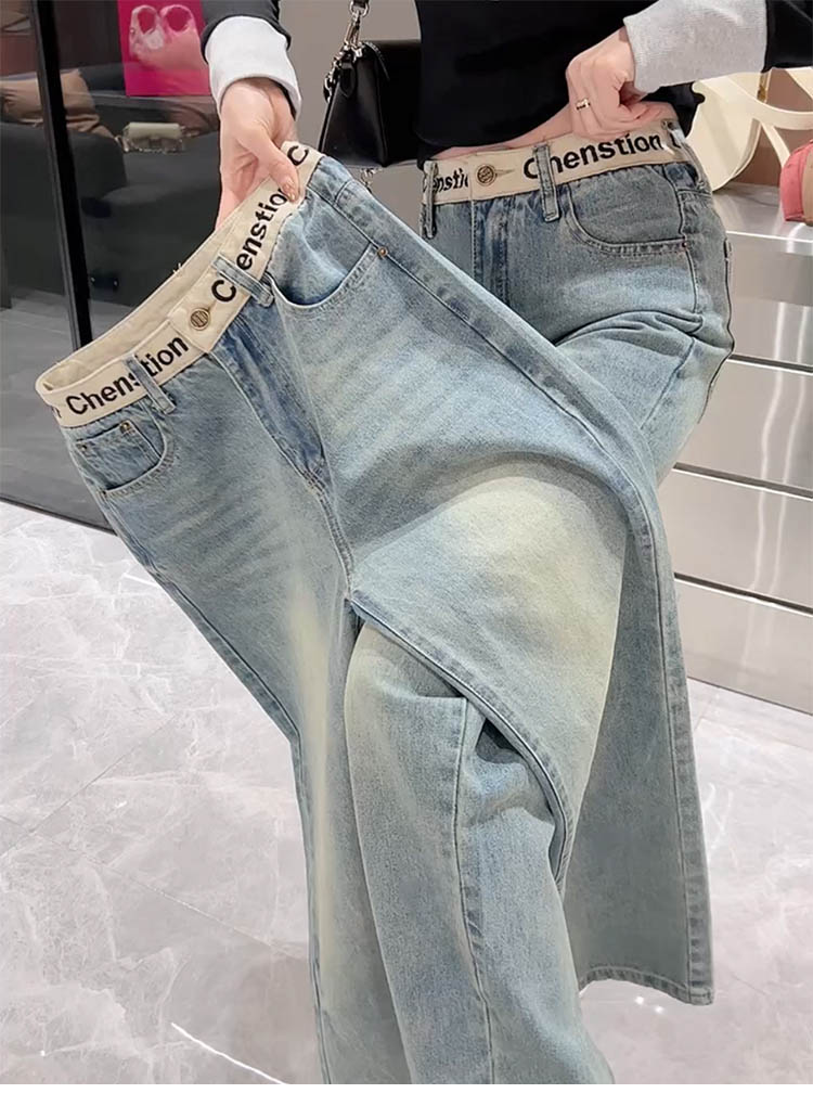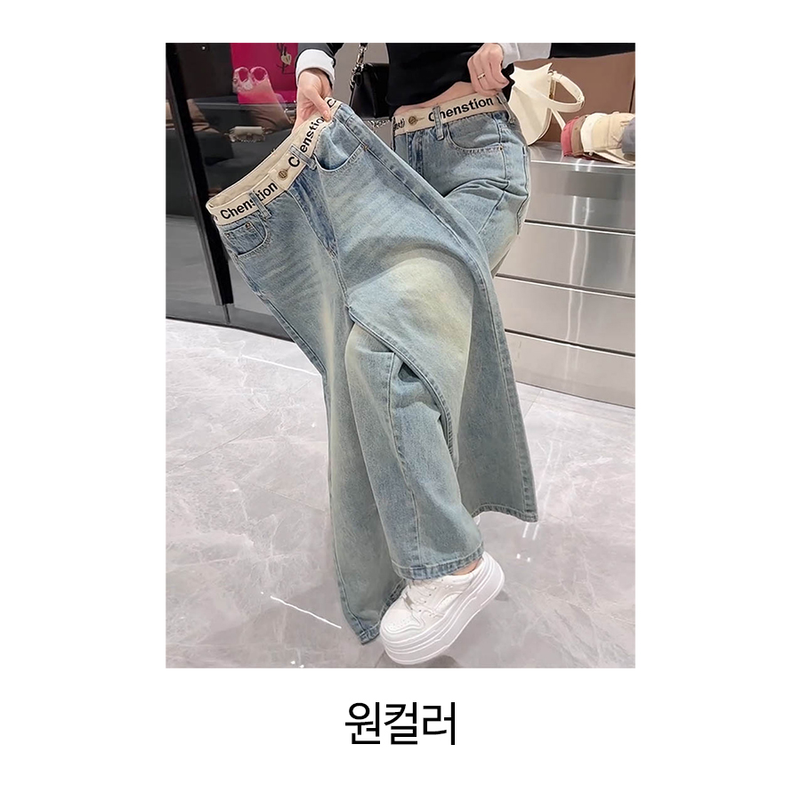 ★금요특가 자정마감 50%★라이트 워싱 레터링 데님 팬츠