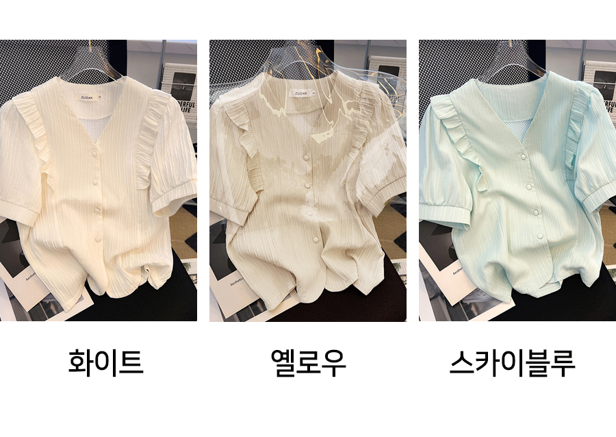 179589 ◈[당일발송] 프릴 포인트 버튼 브이넥 블라우스 25880