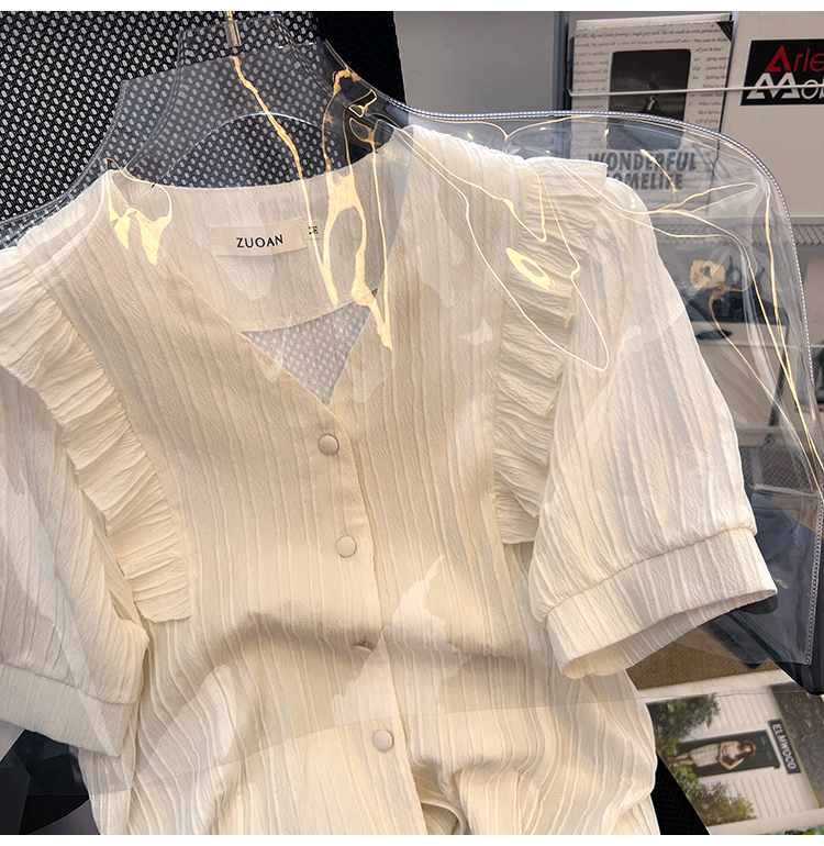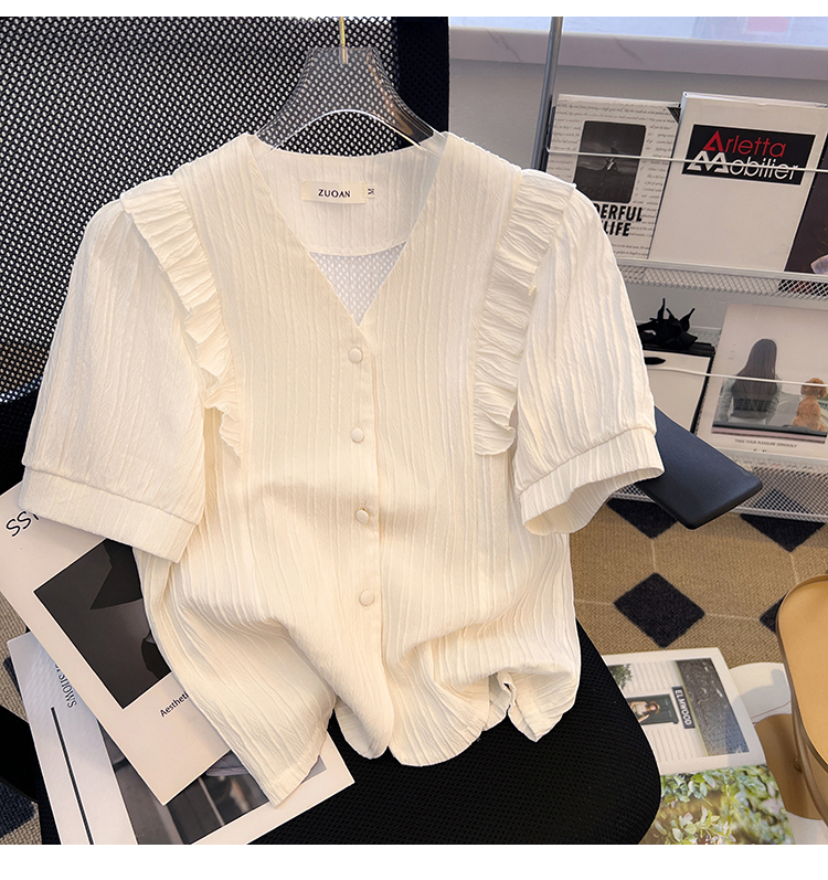 ◈[당일발송] 프릴 포인트 버튼 브이넥 블라우스