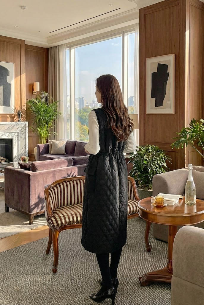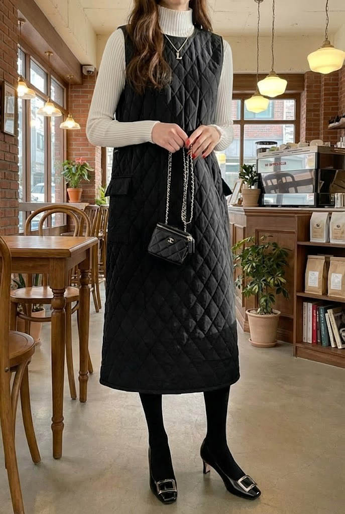 데일리 레이어드 누빔 롱 원피스