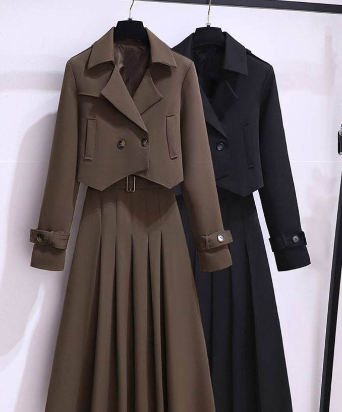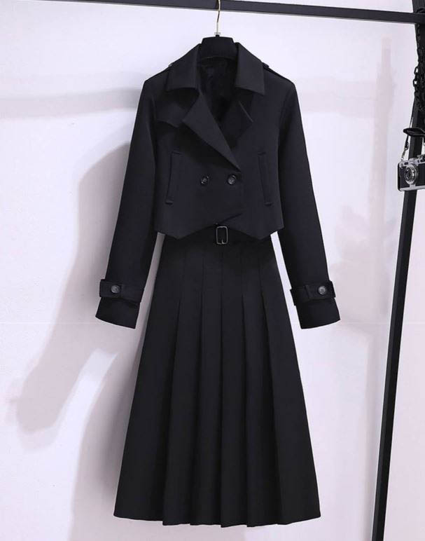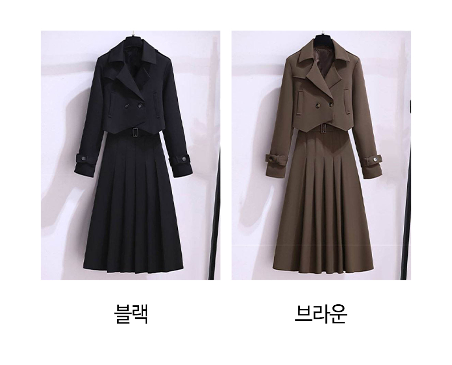 179981 ◈[당일발송] 더블 버튼 카라 자켓&핀턱 스커트 2SET 68590