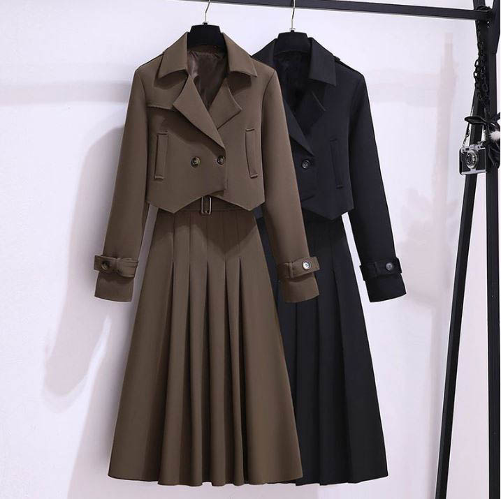 ◈[당일발송] 더블 버튼 카라 자켓&핀턱 스커트 2SET