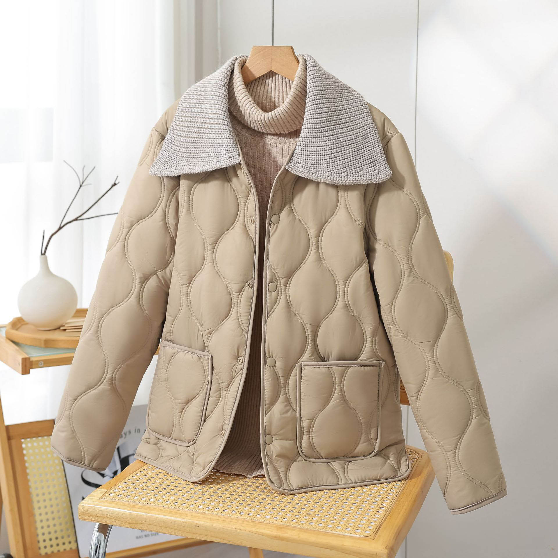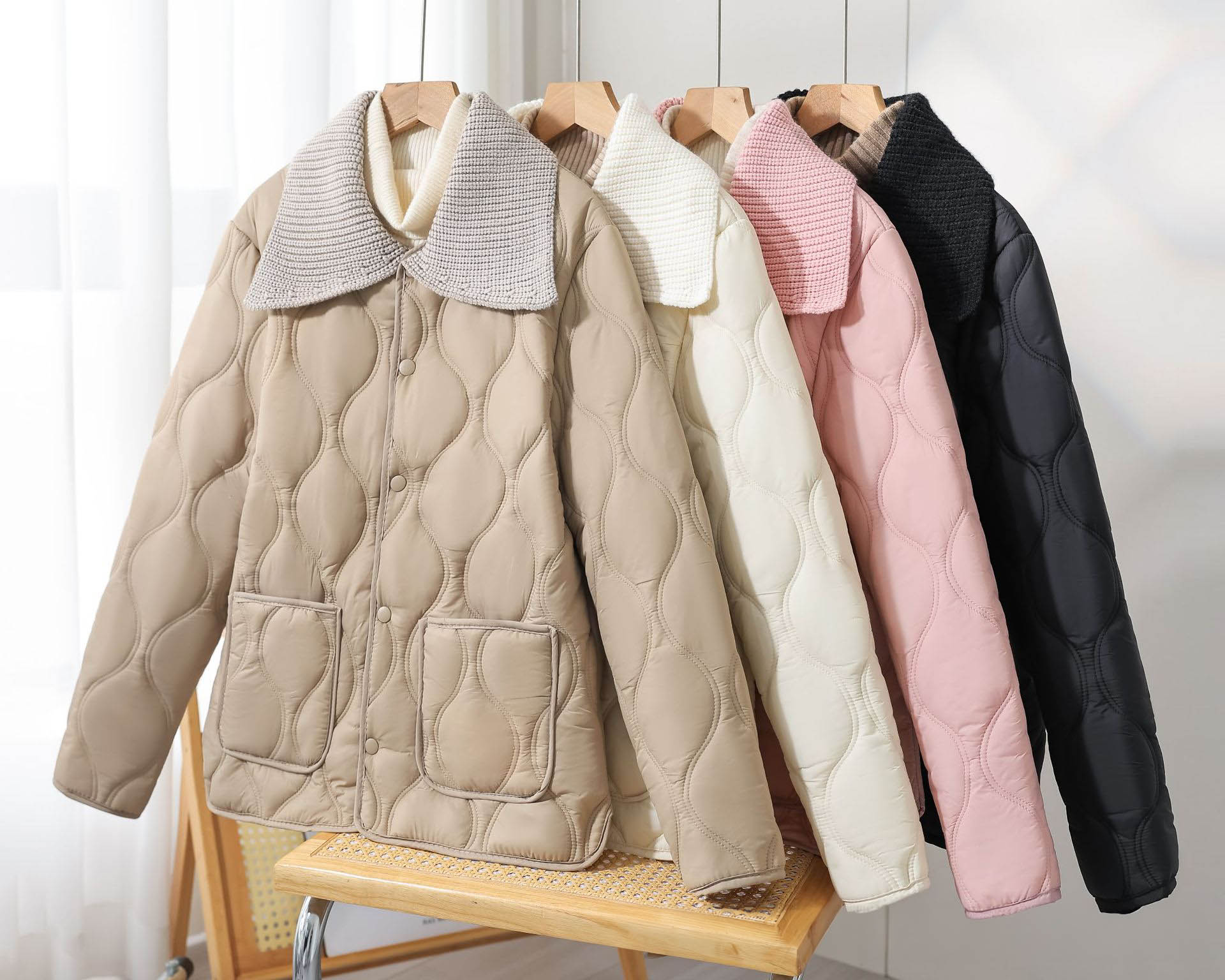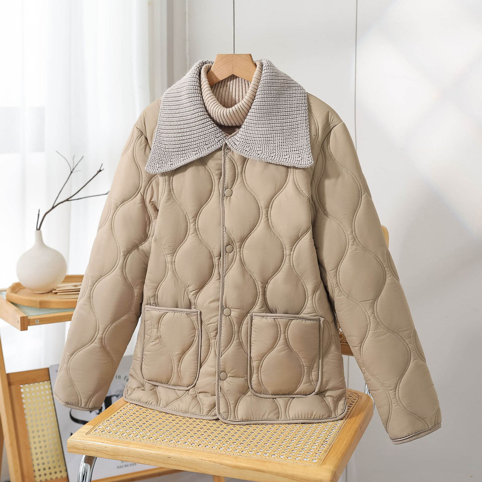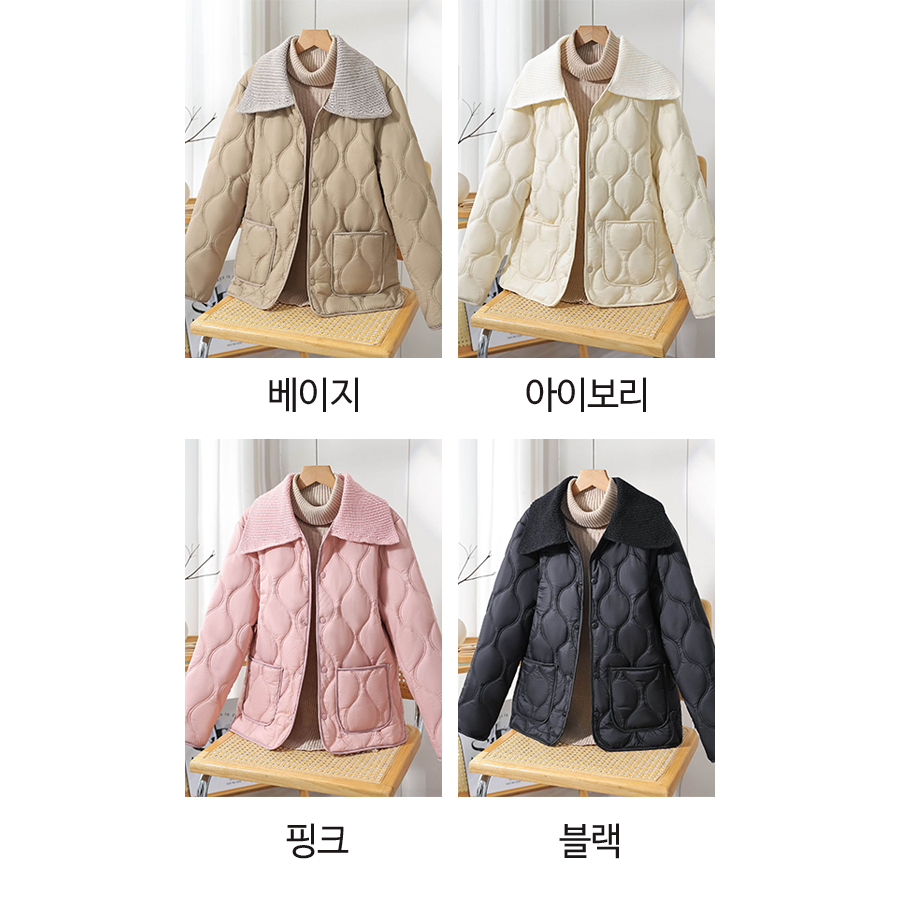 ◈[당일발송]★월요특가 자정마감 50%★. 니트 카라 누빔 웰론 패딩 점퍼