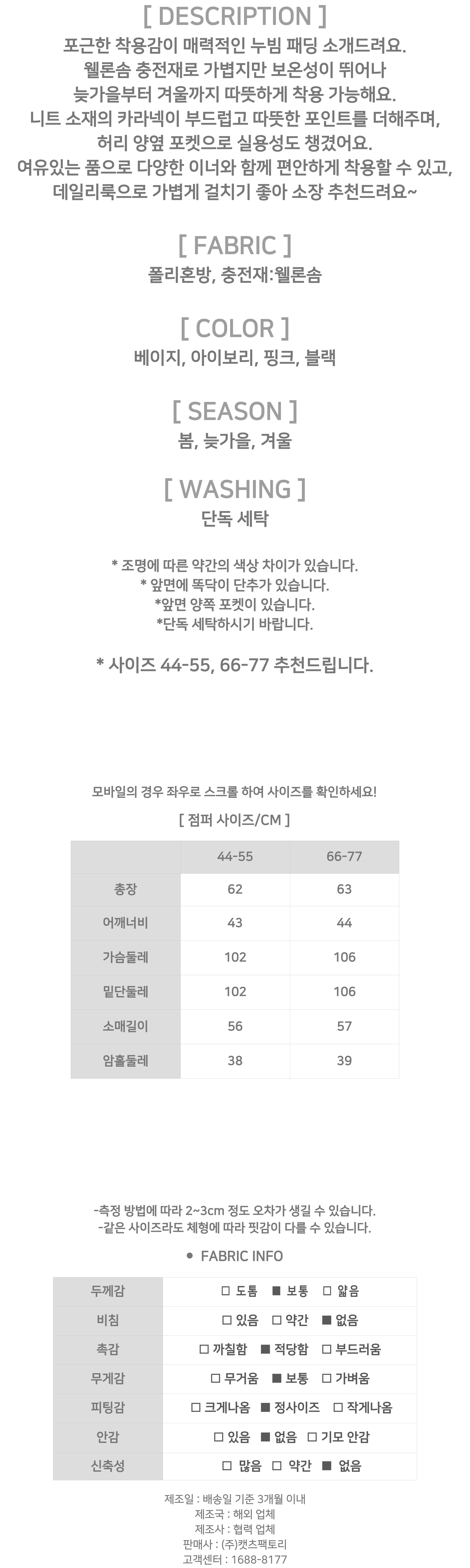 180341 ◈[당일발송]★월요특가 자정마감 50%★. 니트 카라 누빔 웰론 패딩 점퍼 39980