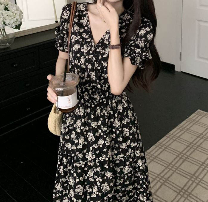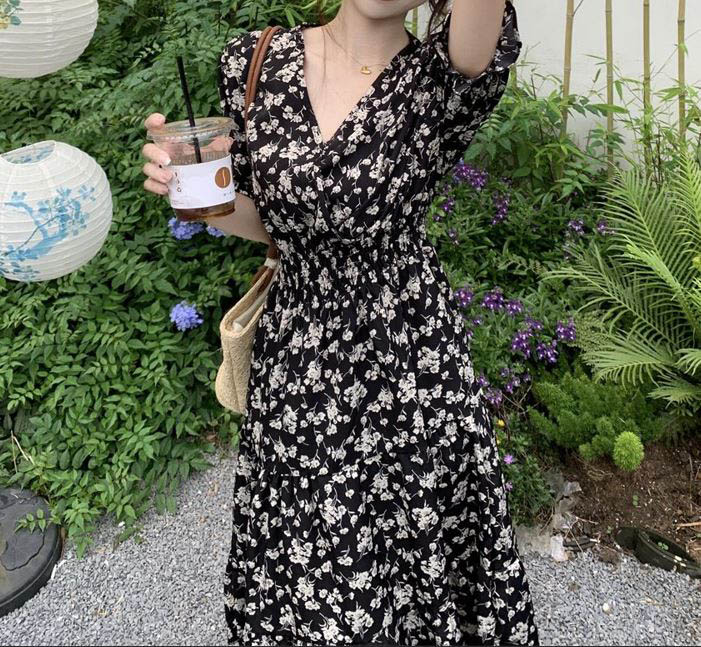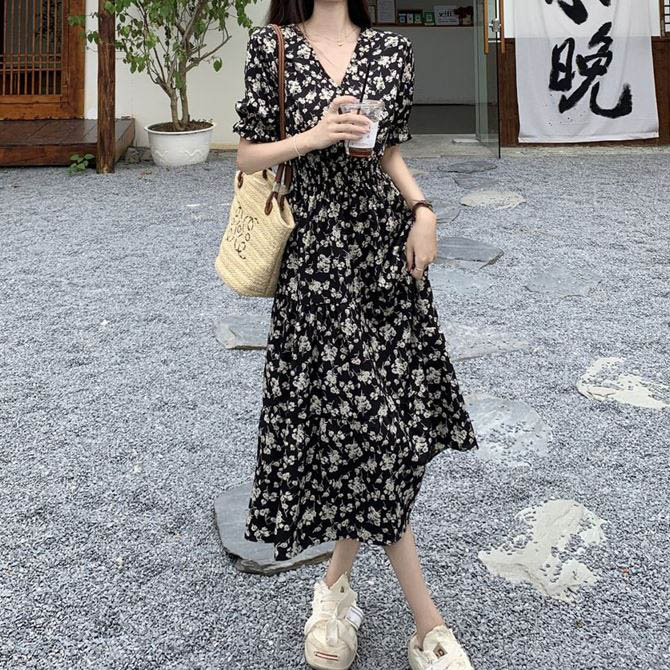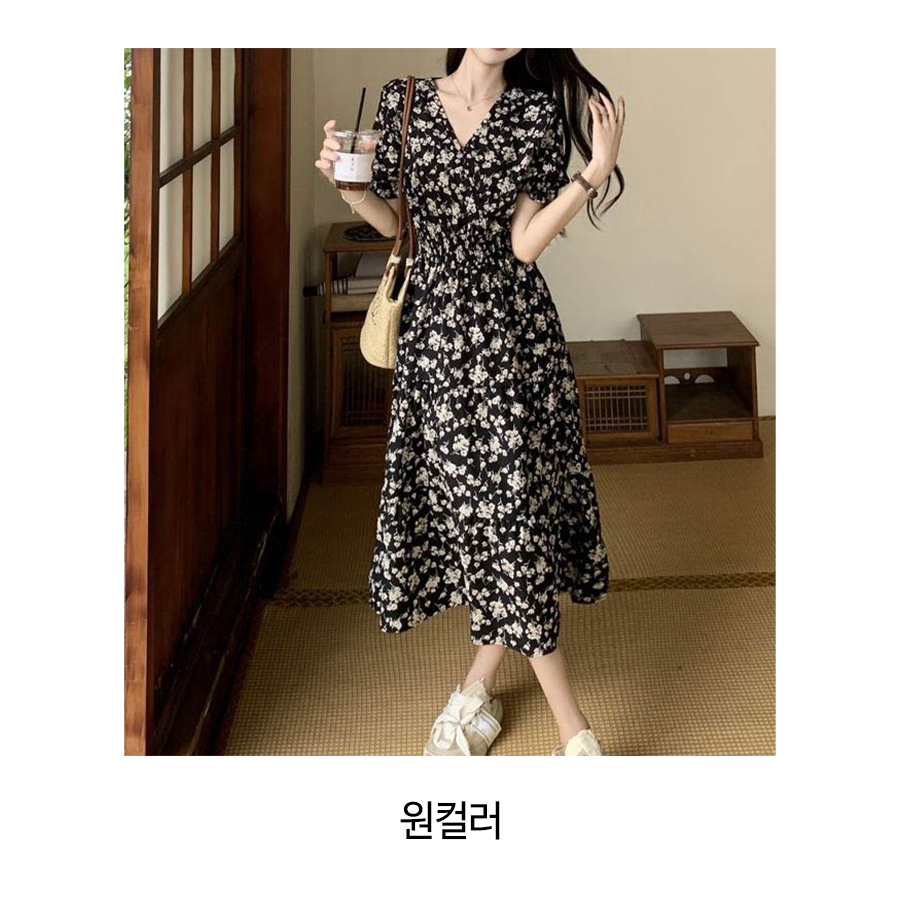 179448 .잔꽃 브이넥 밴딩 여리핏 원피스 21180
