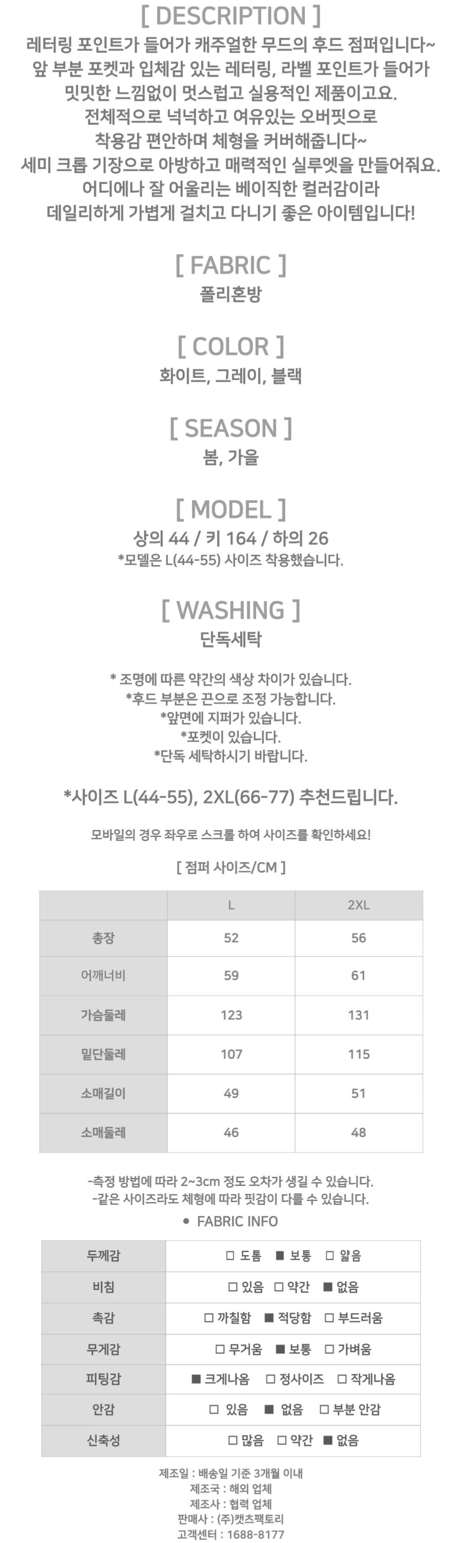 - 제품 사이즈는 측정 방식에 따라 2~3cm의 오차가 있을 수 있으며, 이는 불량의 사유가 되지 않습니다.